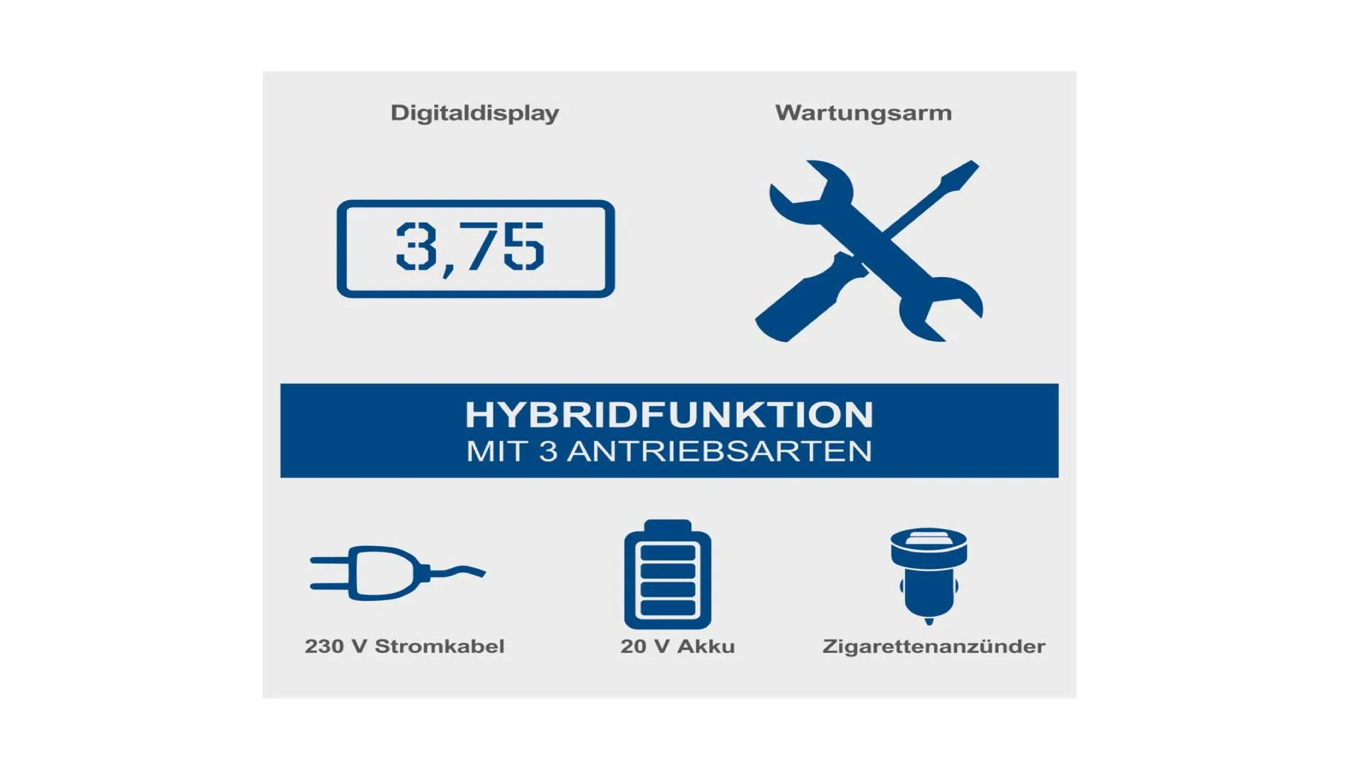 Može raditi na tri načina napajanja: putem strujnog kabla, snažne 20 V baterije ili 12 V priključka u vozilu.