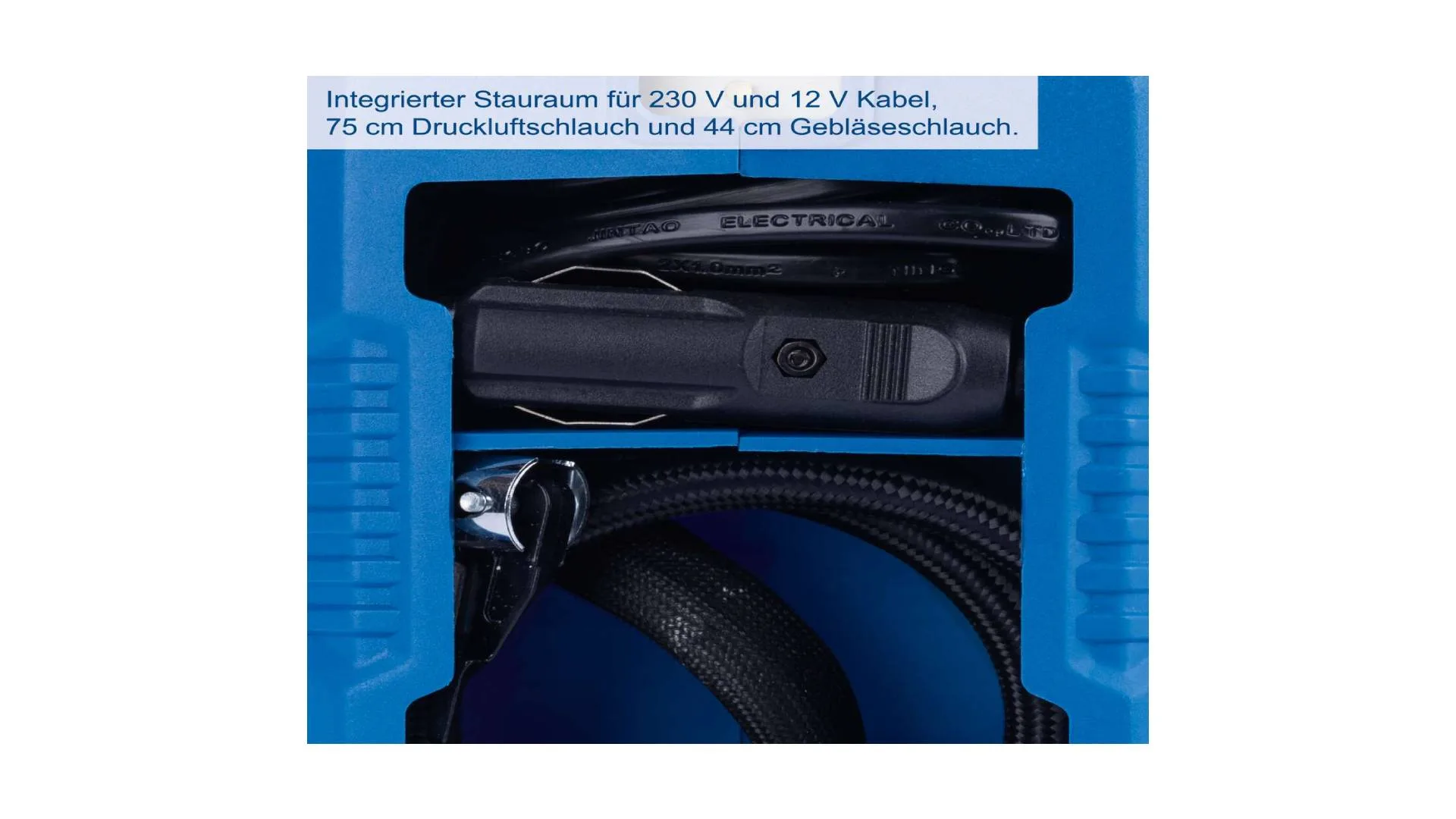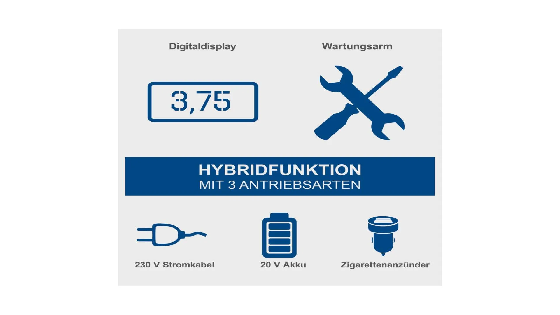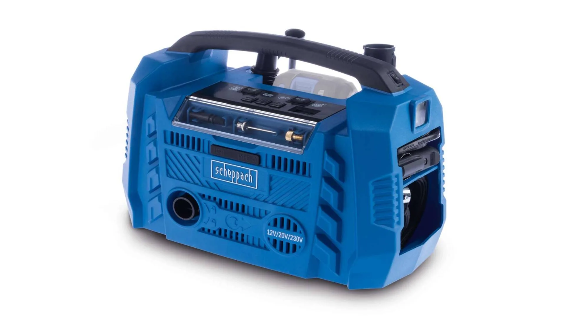 Zahvaljujući hibridnoj funkciji, ovaj model nudi izuzetnu fleksibilnost – može se koristiti na tri načina: preko strujnog kabla, snažne 20 V baterije (4 Ah) ili putem 12 V priključka u vozilu.