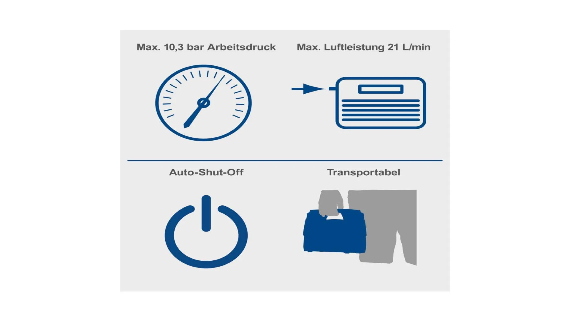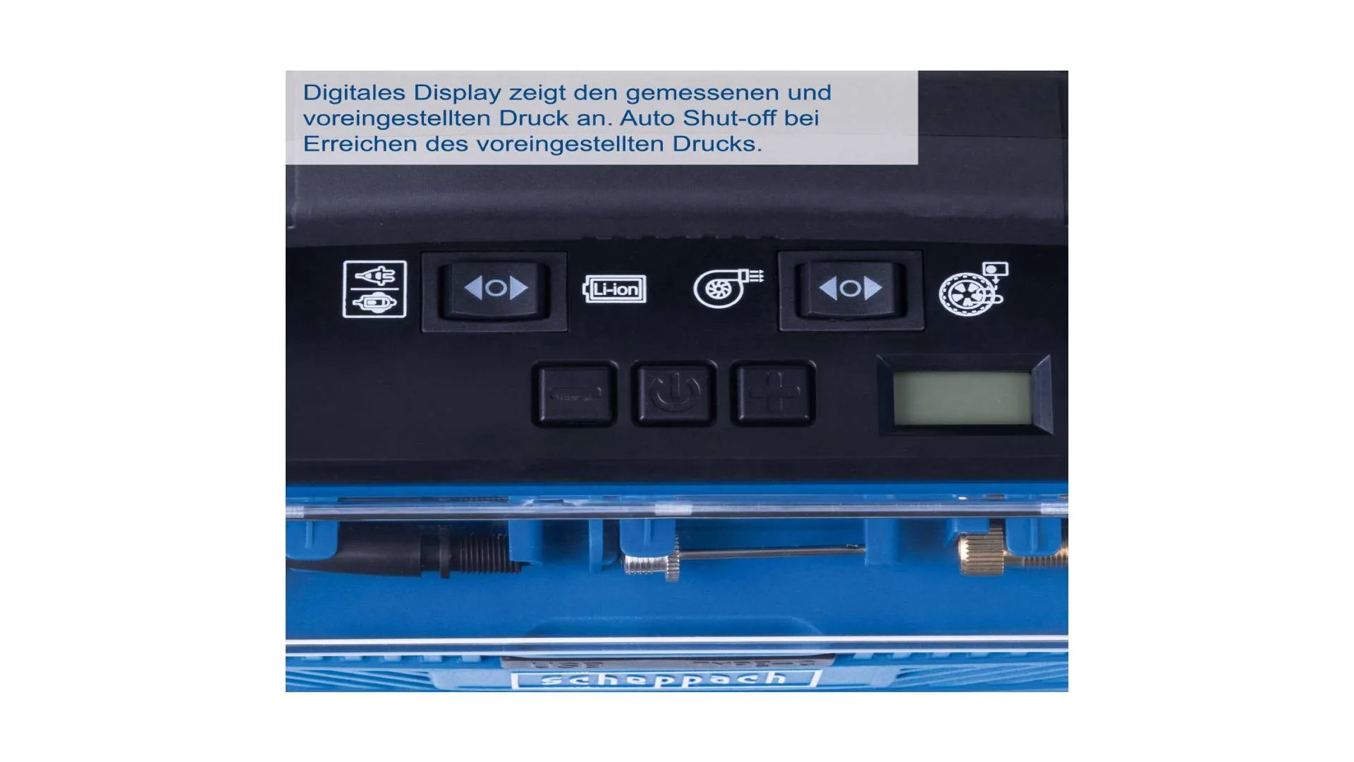 Maksimalni radni pritisak od 10,3 bara lako se podešava preko preglednog digitalnog panela, dok funkcija Auto-Shut-Off automatski gasi uređaj nakon što se dostigne željeni pritisak.