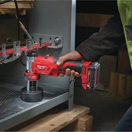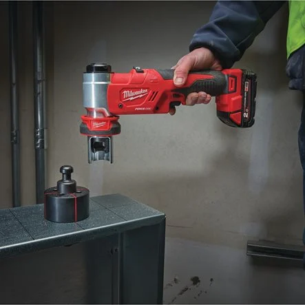 Milwaukee M18 HKP-201CA je profesionalni aku hidraulični bušač iz FORCE LOGIC™ serije dizajniran za brzo i precizno bušenje okruglih rupa u metalnim limovima bez neravnina i grubo obrađenih rubova. Ovaj model razvija silu bušenja do 60 kN, što omogućava bušenje rupa promjera do 100 mm u čeliku debljine do 3,0 mm i nerđajućem čeliku debljine do 2,5 mm, što ga čini idealnim za upotrebu u metalnoj proizvodnji, konstrukciji i instalacijama gdje su potrebni pouzdani rezultati i efektivna preciznost.
