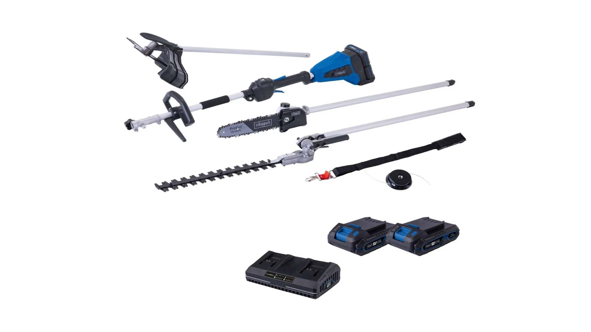 Scheppach BC-MFH400-XS2 je snažan i svestran akumulatorski multifunkcionalni alat koji kombinuje čak četiri funkcije u jednom uređaju – trimer za travu, motorna kosa, škare za živu ogradu i teleskopska motorna pila.