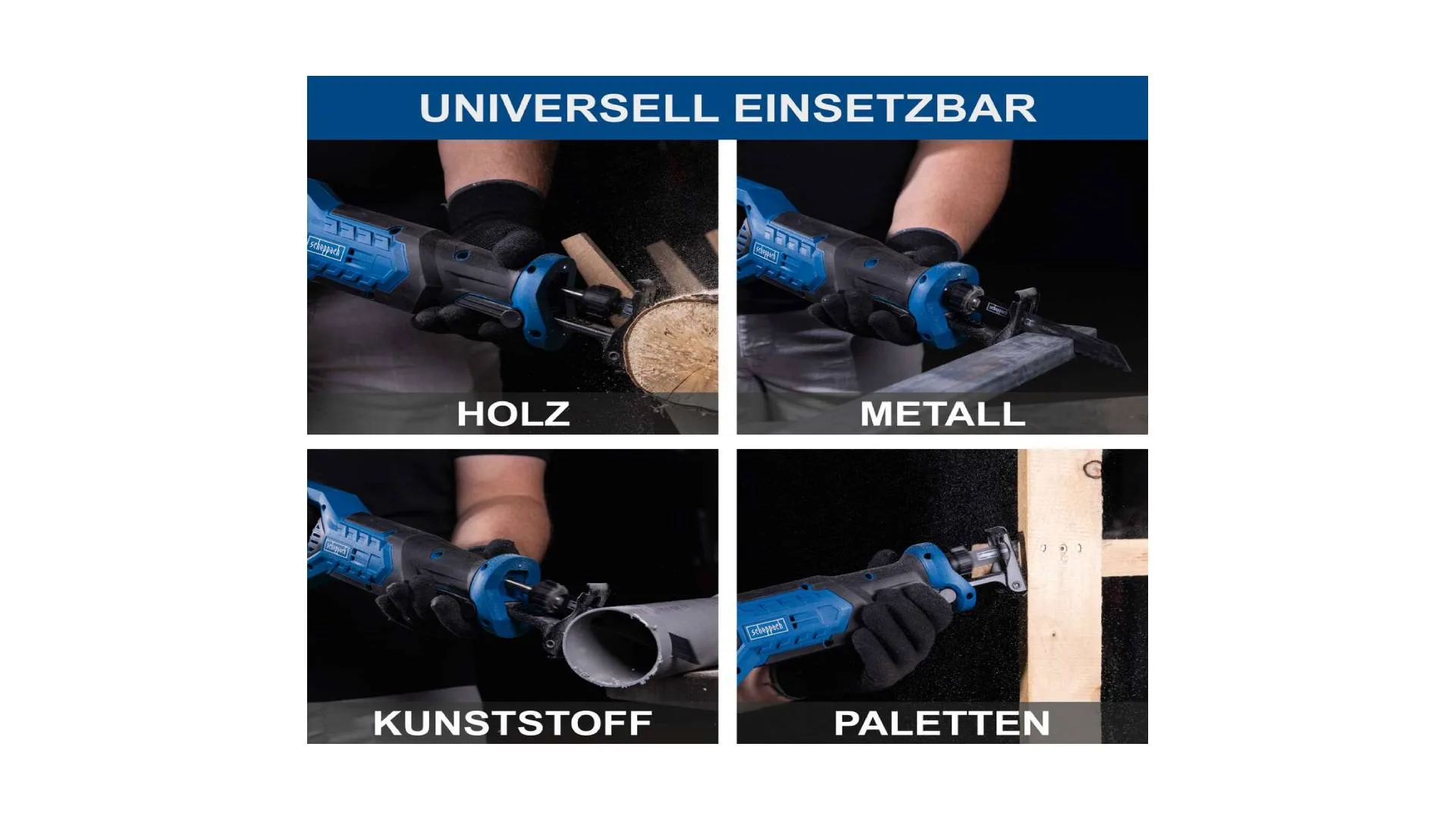 Scheppach akumulatorska pila BC-RS250-XS4 idealan je izbor za precizne i snažne rezove u drvetu, plastici, obojenim metalima i građevinskim materijalima (uz odgovarajuću oštricu).