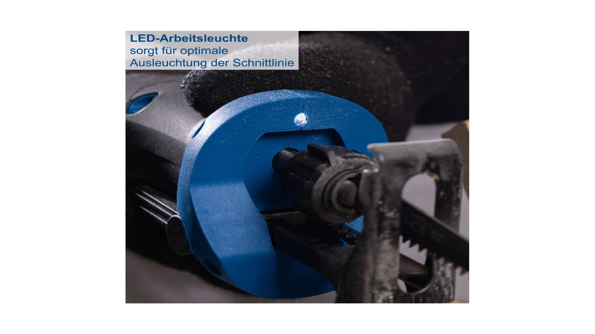 Opremljena je brzim sistemom izmjene oštrica bez alata, podesivom stopom za promjenu dubine reza i LED radnim svjetlom koje ostaje upaljeno i nakon gašenja za bolju preglednost.
