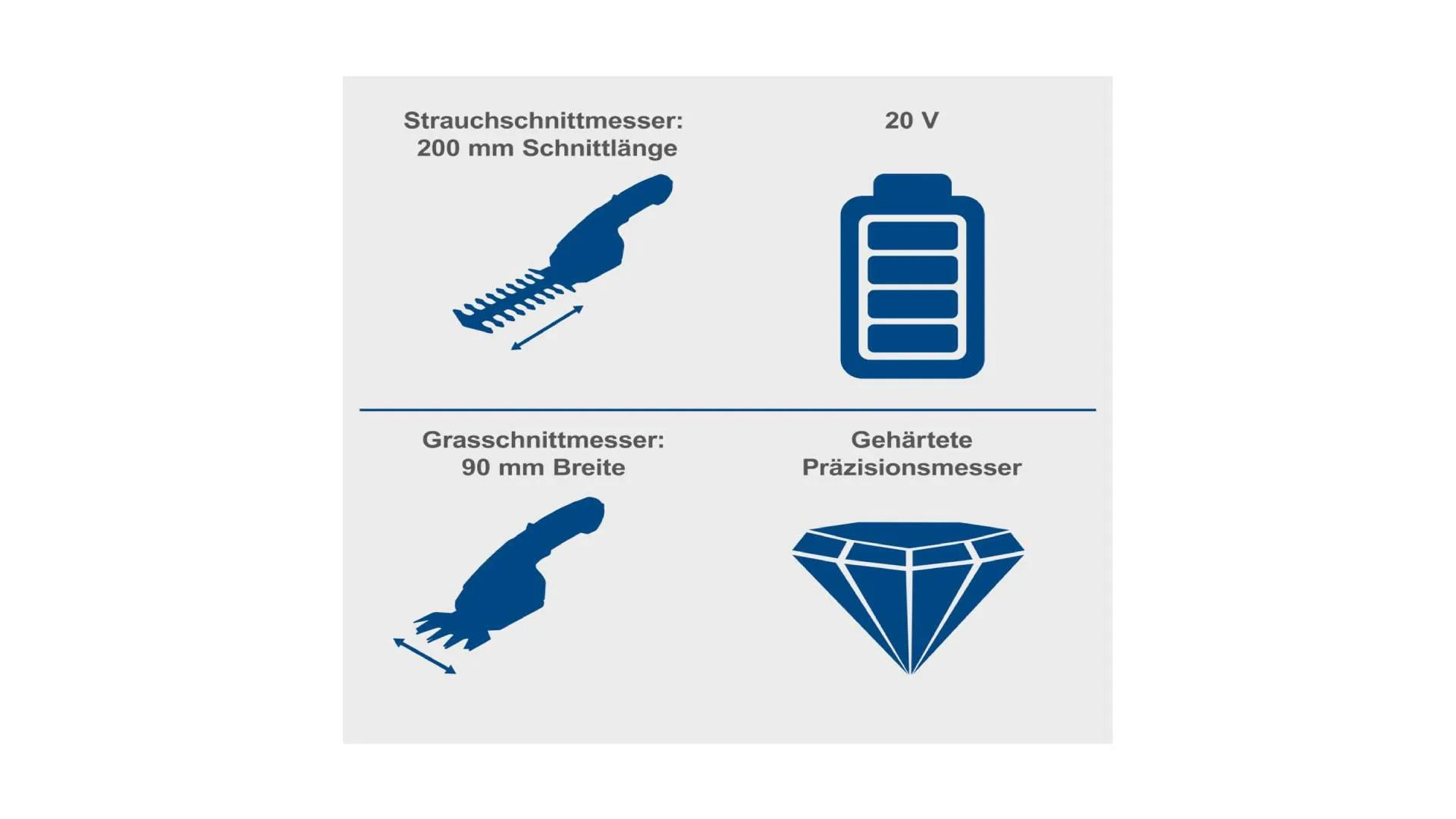 Nož za travu širine 90 mm idealan za održavanje travnih rubova dok je nož za grmlje sa dužinom reza od 200 mm savršen za oblikovanje živica i manjih grmova.