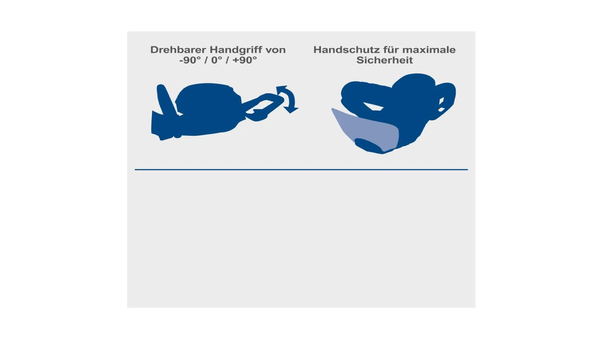 Ergonomski Softgrip rukohvati i rotirajuća ručka s mogućnošću podešavanja pod -90°, 0° i +90° pružaju dodatnu udobnost i fleksibilnost pri radu.