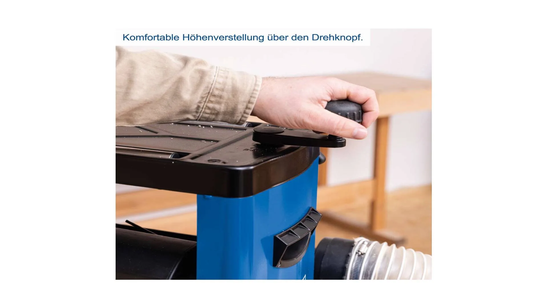 Podešavanje visine obratka vrši se pomoću praktične ručne kurble uz jasnu skalu za precizno određivanje dubine rezanja.