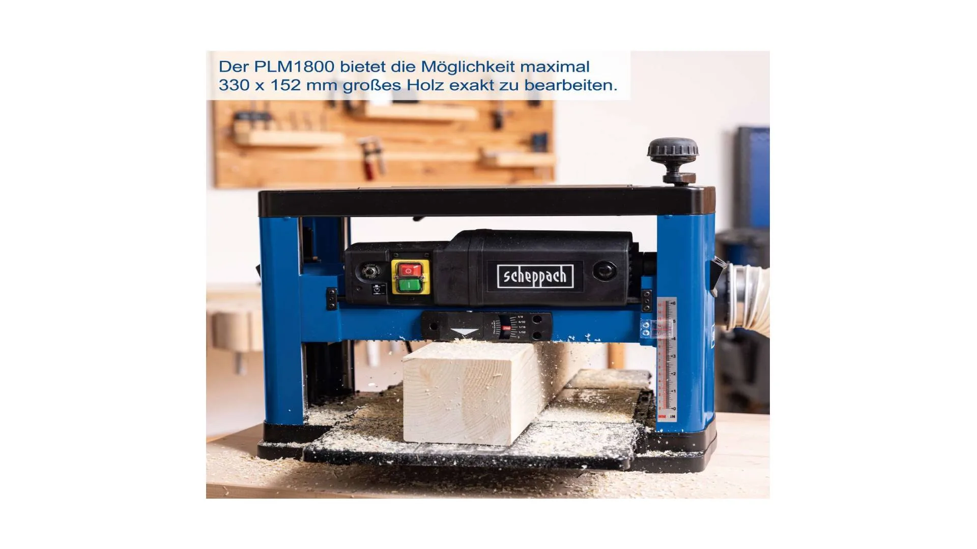 Scheppach PLM1800 debljača predstavlja pouzdanu električnu mašinu za hoblanje, idealnu za radionice i uradi-sam projekte.