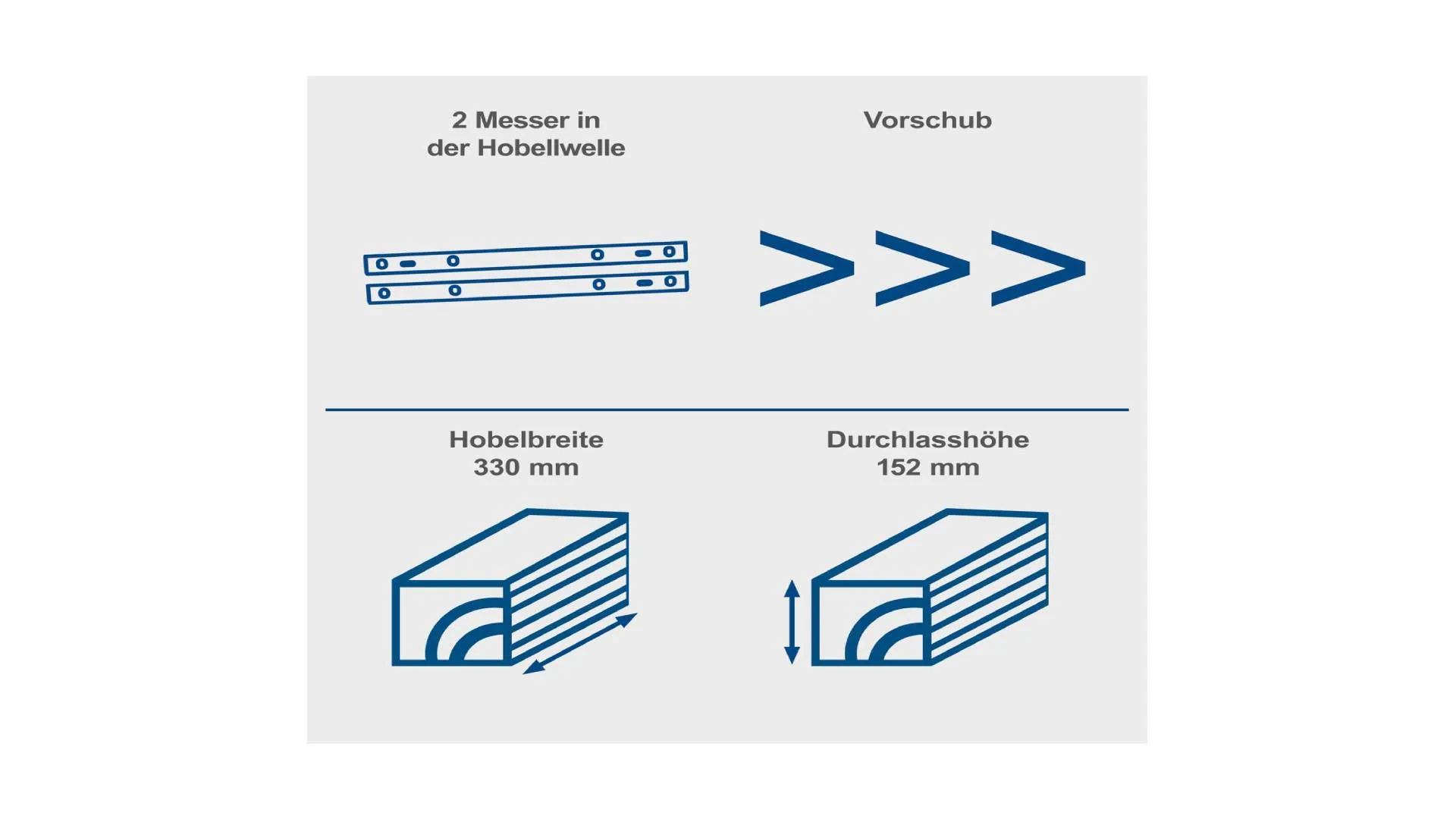 Opremljena snažnim motorom od 1.500 W, ova mašina postiže brzinu do 21.000 obrtaja u minuti i omogućava preciznu obradu drveta sa maksimalnom širinom hoblanja od 330 mm i debljinom obratka do 152 mm.