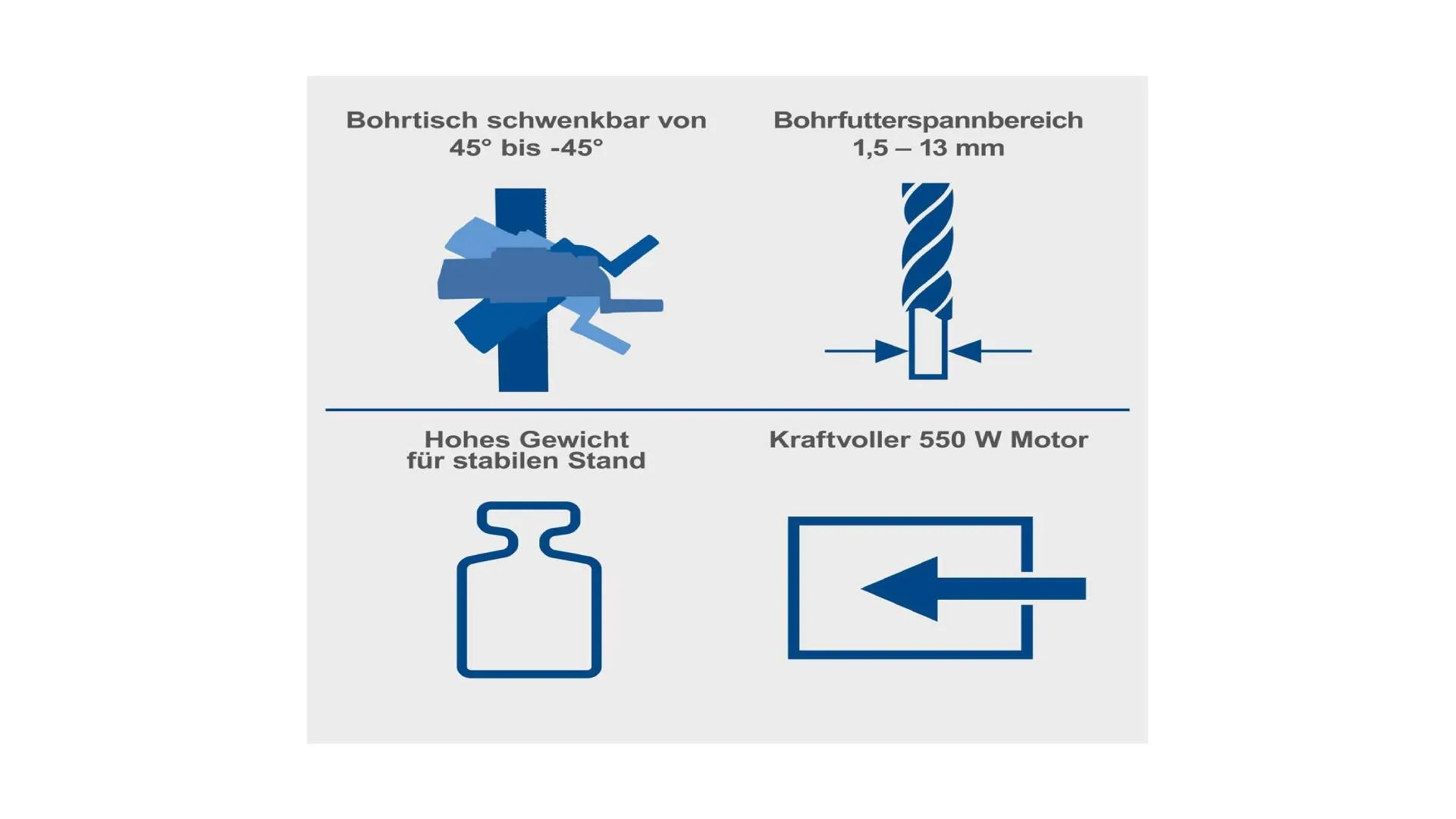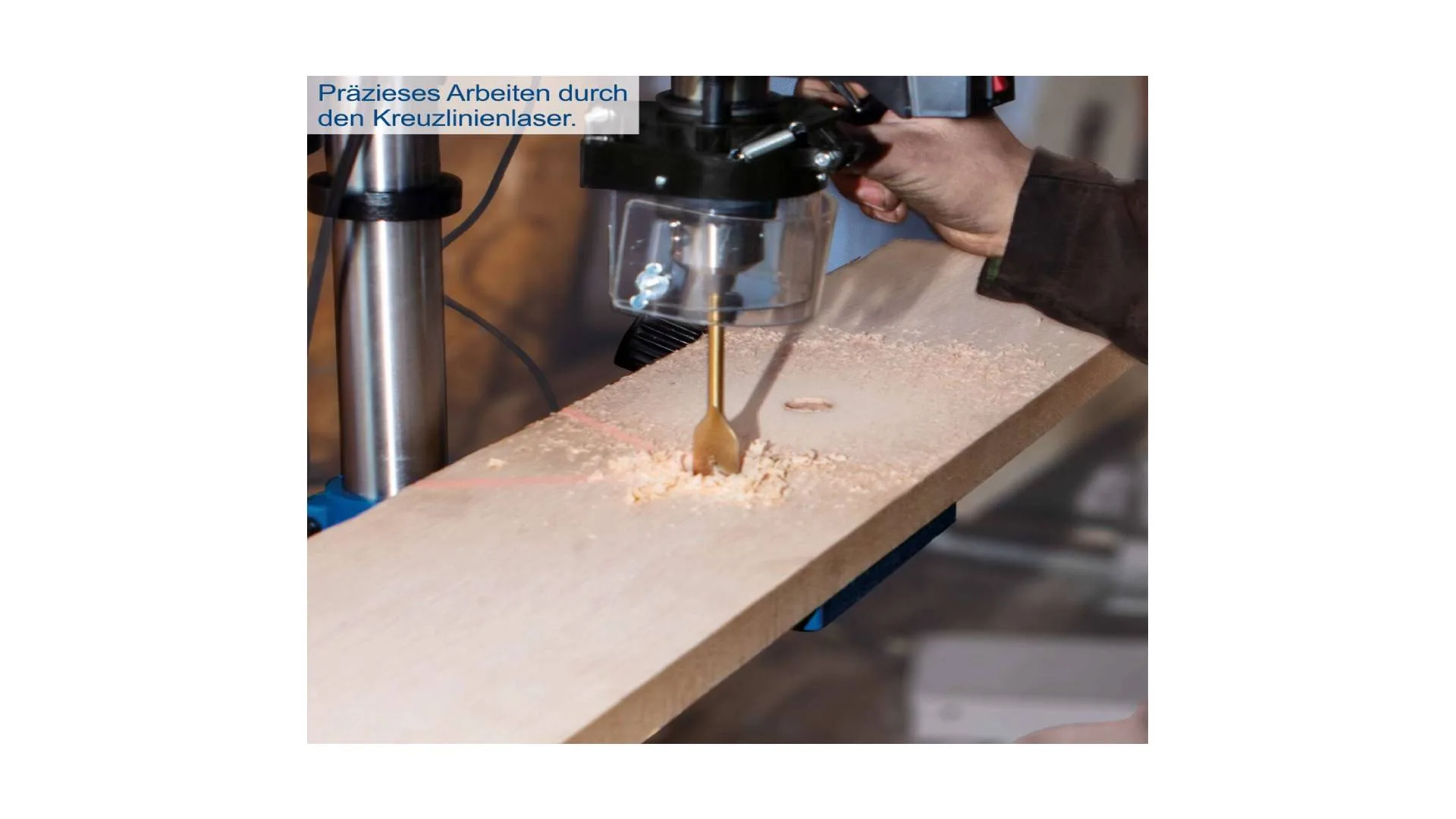 Bušilica dolazi sa zupčastim steznim priborom sa rasponom od 1,5 do 13 mm, a zahvaljujući integrisanom škripcu, obradak se sigurno fiksira bez pomjeranja i neželjenih grešaka.