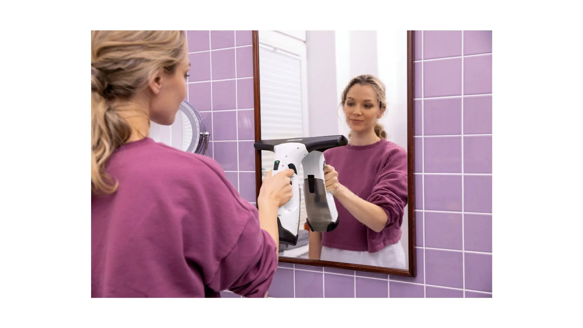Električno usisavanje prljave vode sprječava kapanje, dok pametna kombinacija boce s raspršivačem, mikrovlakna i usisne funkcije omogućava blistavo čiste prozore bez mrlja i ostataka.