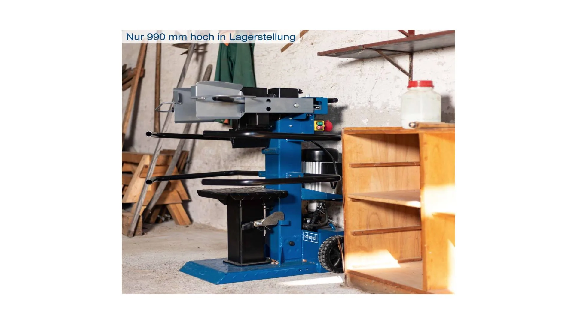 Iako robustan, ovaj cjepač je praktično kompaktan – u spuštenom položaju visok je samo 99 cm, pa ga je lako odložiti.