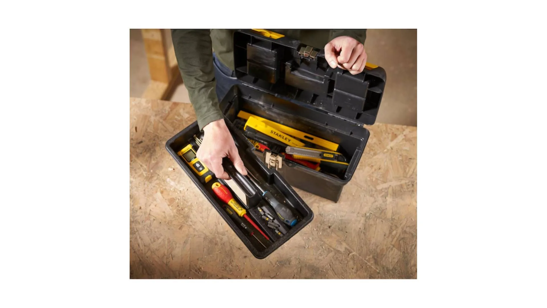 Stanley alatni kofer dimenzija 40,5×21×18,1 cm nudi praktično skladištenje za svakodnevne potrepštine, poput ručnih i malih električnih alata te rezervnih dijelova.