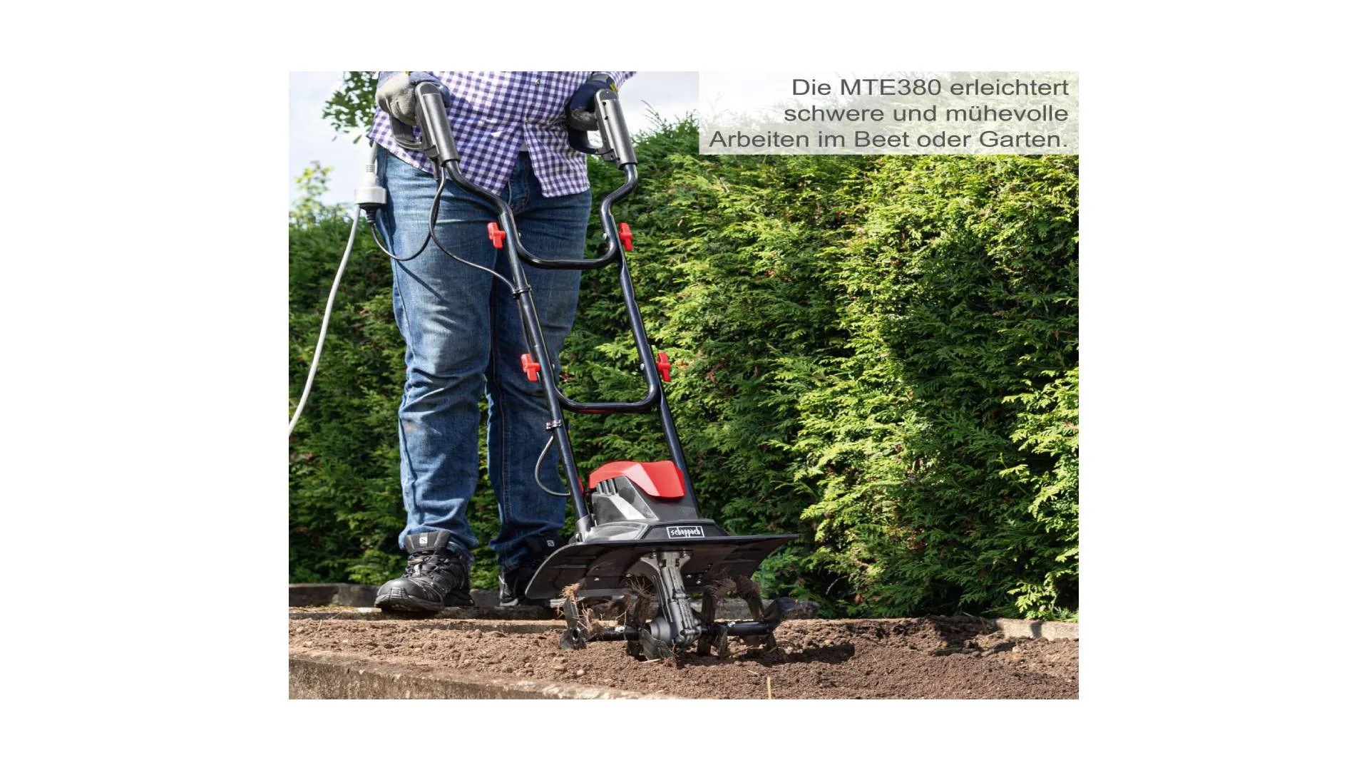 Scheppach MTE380 električna kopačica savršen je izbor za hobi i DIY korisnike koji žele pouzdanu i laku mašinu za obradu vrta.