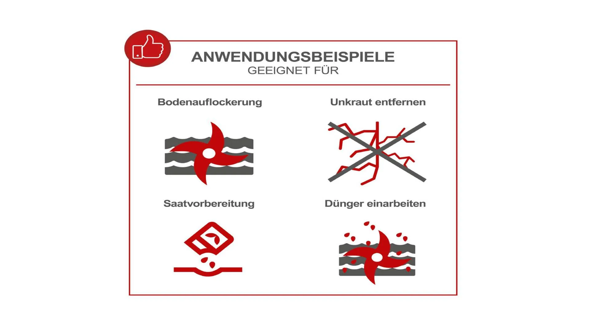 Stabilna brzina okretanja od 400 o/min naprijed i nazad garantuje ravnomjeran rezultat obrade tla.