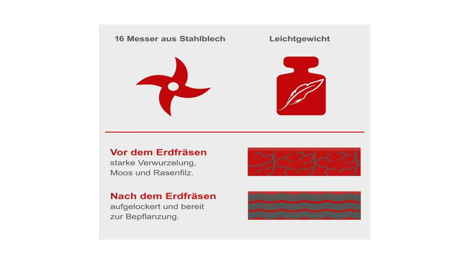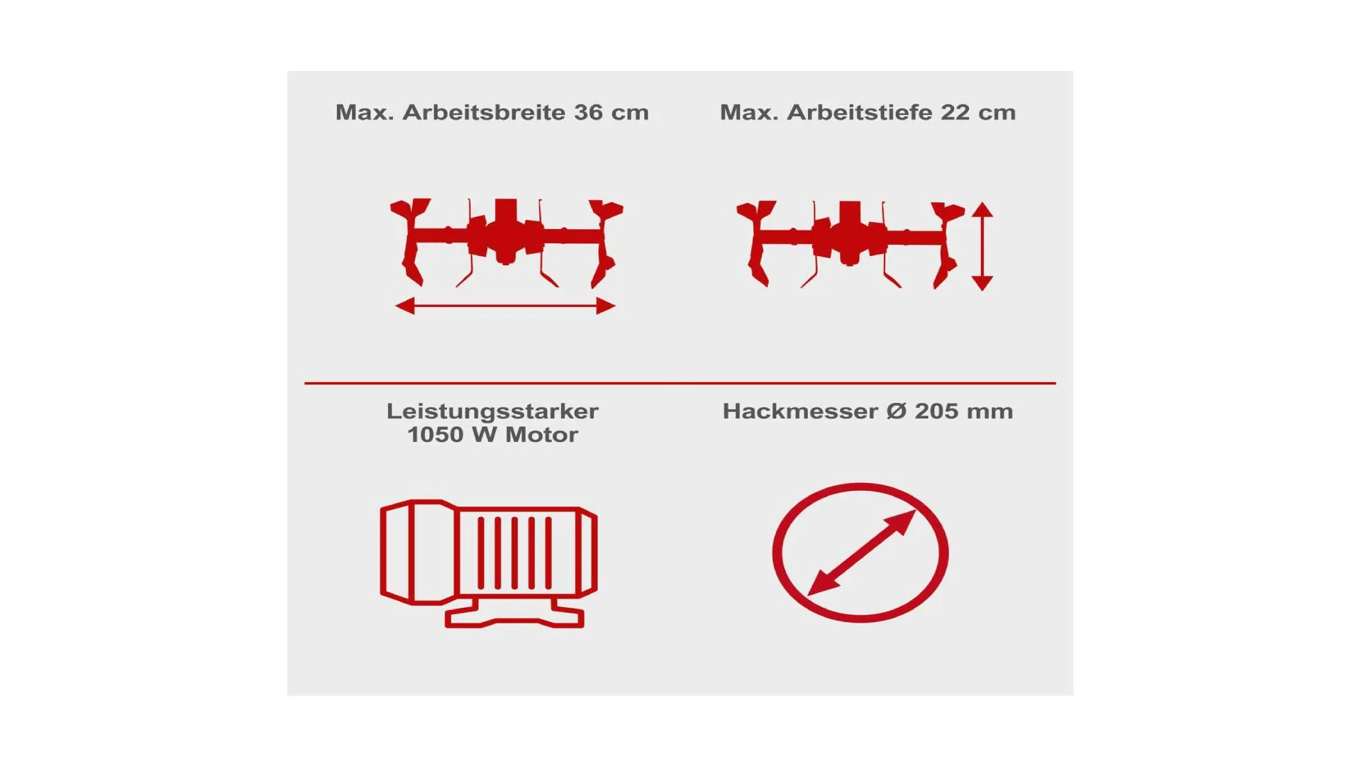 Sa snagom motora od 1050 W i efikasnim četkastim motorom, ova kopačica omogućava jednostavno rahljenje i pripremu zemlje.
