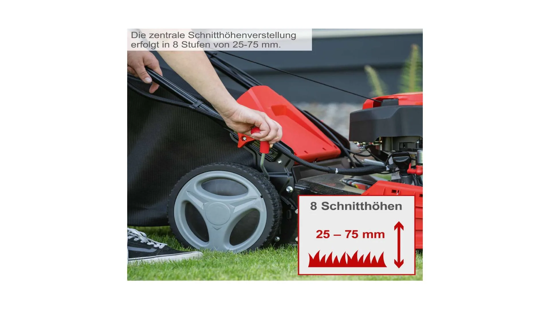 Širina košenja od 46 cm omogućava brzo pokrivanje većih površina, dok centralno podešavanje visine rezanja u 7 nivoa (25–75 mm) pruža potpunu kontrolu nad rezultatom.