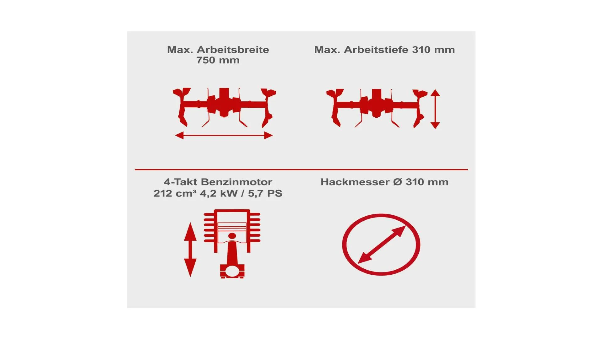 Kopačica dolazi sa graničnikom dubine, gumenim točkovima i noževima za frezanje.