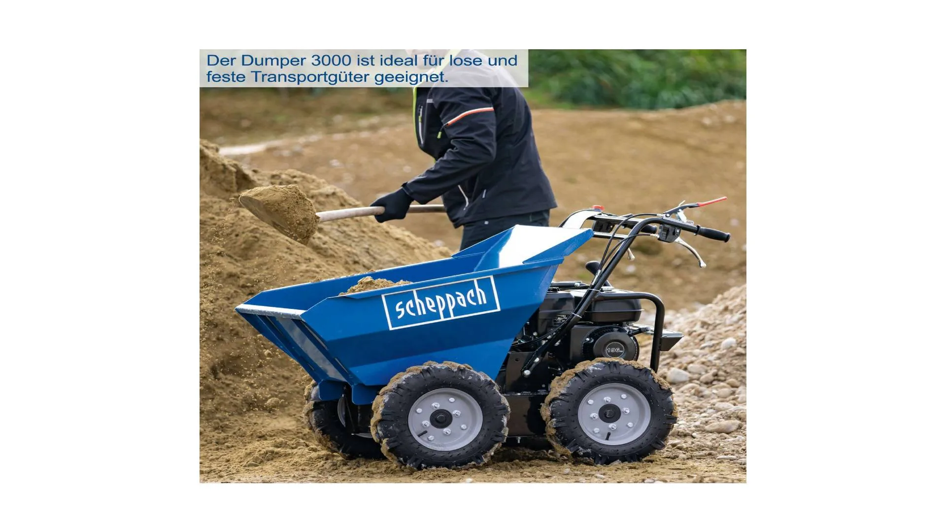 Scheppach DP3000 motorni dumper olakšava transport različitih tereta na gradilištima, u vrtlarstvu, šumarstvu ili poljoprivredi.