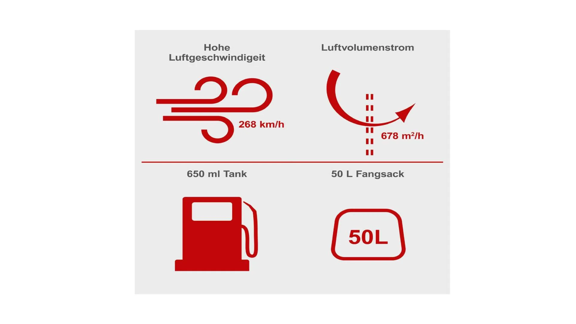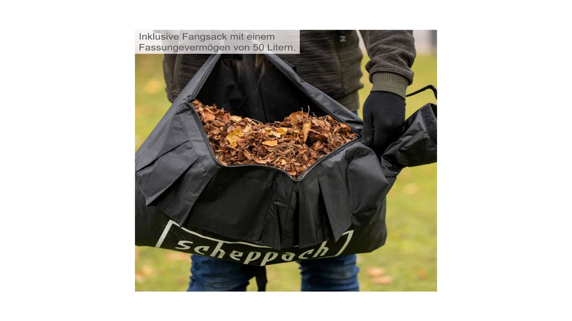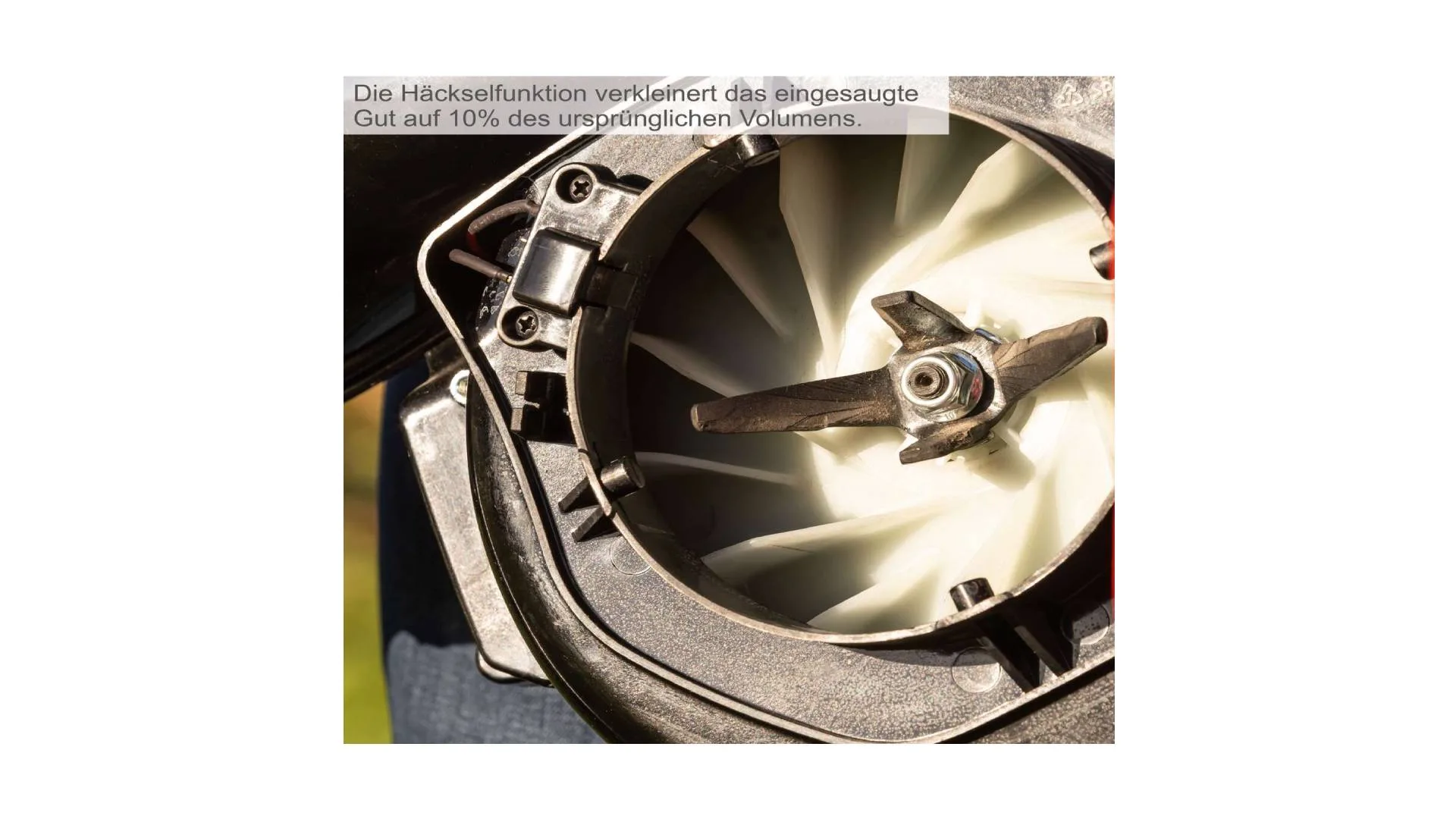 Zahvaljujući integriranoj sjeckalici, usisani materijal se smanjuje na samo 10% izvornog volumena, što omogućava da se više lišća pohrani u veliku vreću za sakupljanje od 50l, smanjujući potrebu za čestim pražnjenjem.