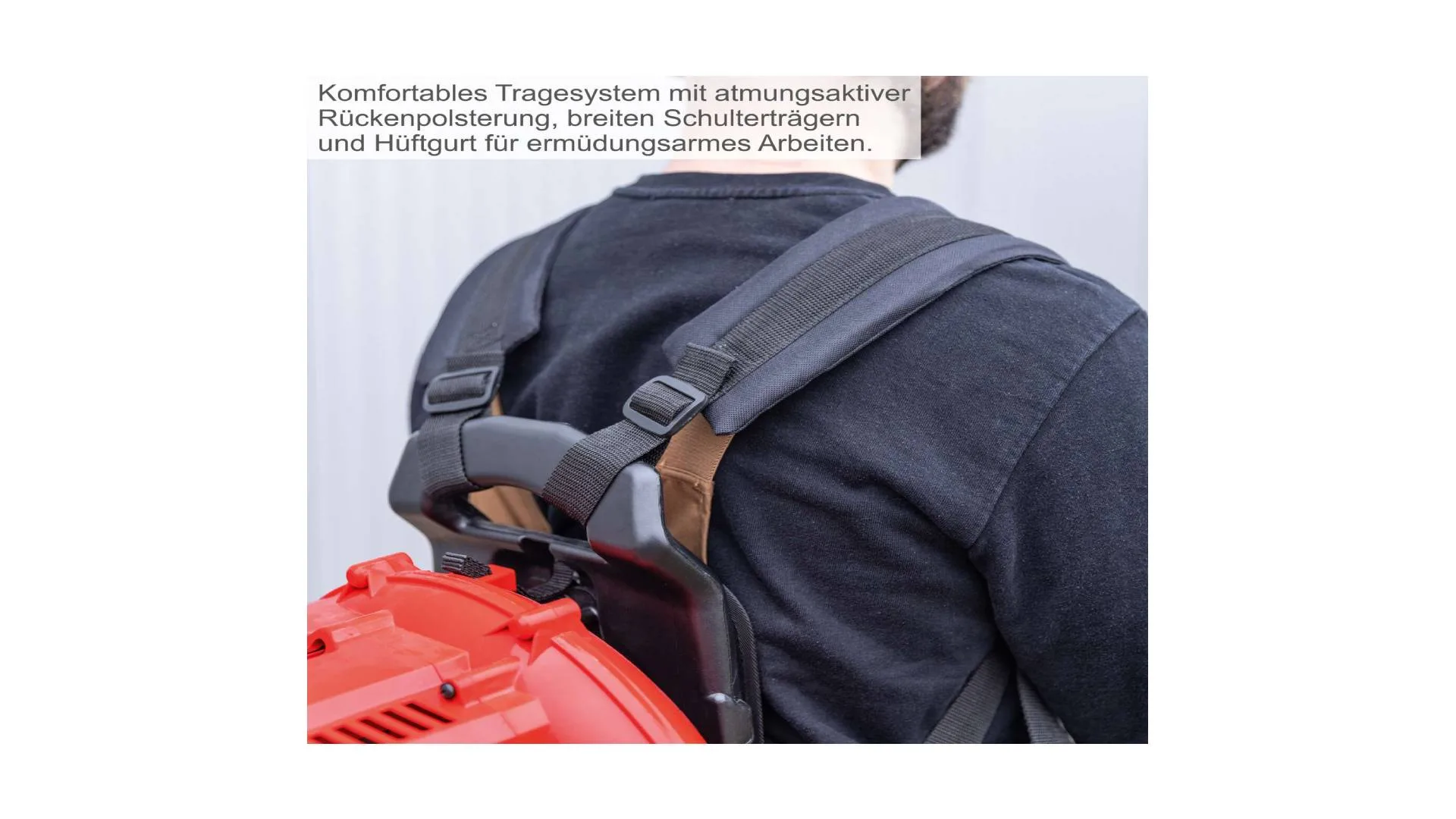 Benzinski motor se nosi na leđima pomoću podesivog, tapaciranog i vibracije-apsorbirajućeg okvira, što u kombinaciji sa Anti-Vibracijskim sistemom i ergonomskom drškom omogućava rad bez umora, čak i tokom dužih radnih sati.