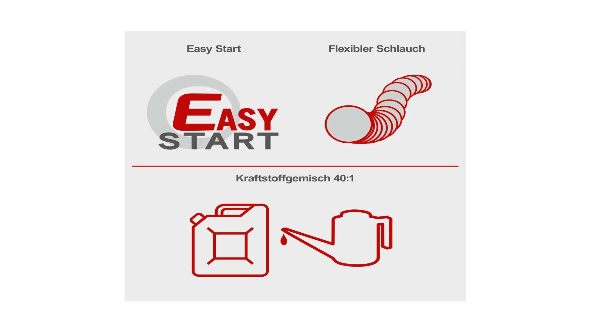 Startanje uređaja vrši se klasičnim povlačenjem sajle, a rezervoar za gorivo od 1,0 l omogućava dugotrajni rad.