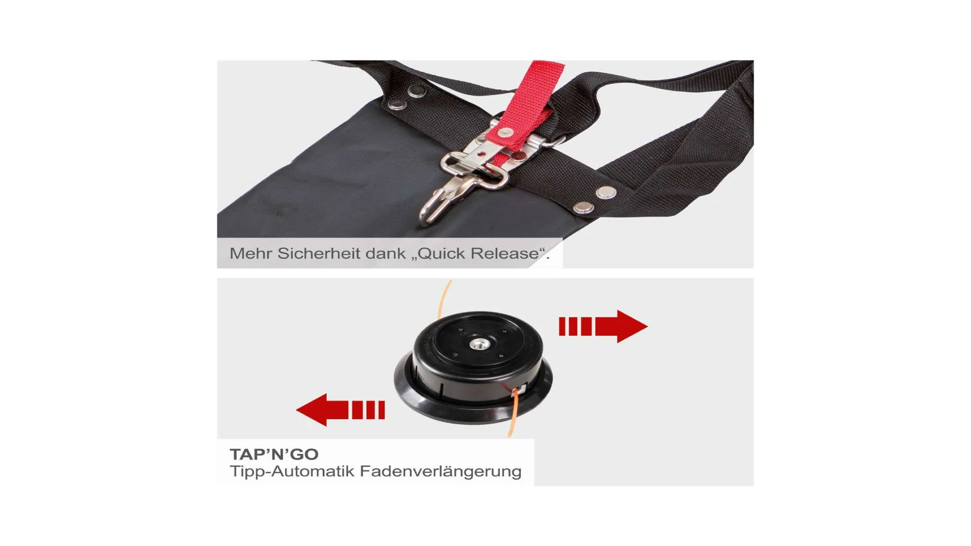 Trimer za travu ima širinu košenja 450 mm, duploslojnu kalem-spulu sa 4 m najlona. Tipp-Automatik sistem produžava najlon jednostavnim dodirom o tlo.ž