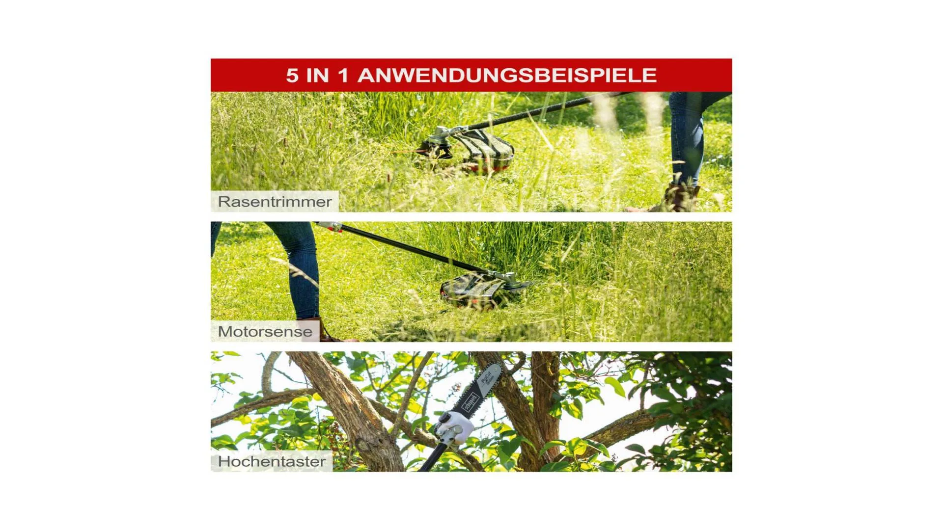 Scheppach MTC42-5P je 5-u-1 benzinski multifunkcionalni uređaj koji u sebi objedinjuje trimer, motornu kosu, makaze za živu ogradu, visoku testeru i puhač lišća.