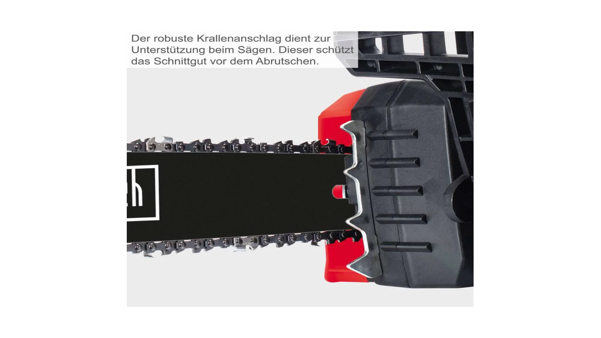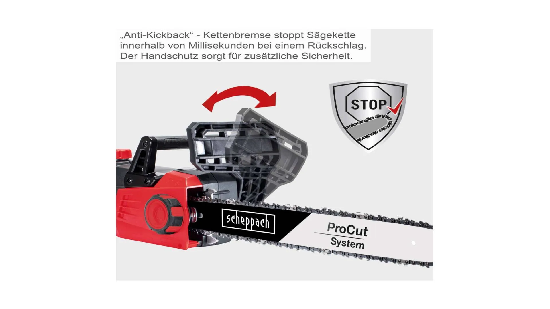 Integrisana sigurnosna kočnica reaguje u milisekundama u slučaju povratnog udarca, a metalni graničnik pomaže u stabilnom vođenju pile kroz drvo i sigurnijem radu.