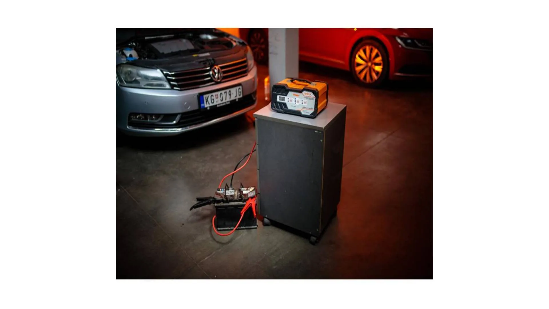 Uz uključena kliješta za punjenje i startovanje i težinu od 7,46 kg, uređaj je stabilan, lako prenosiv i idealan za radionice, garaže ili terensku upotrebu.