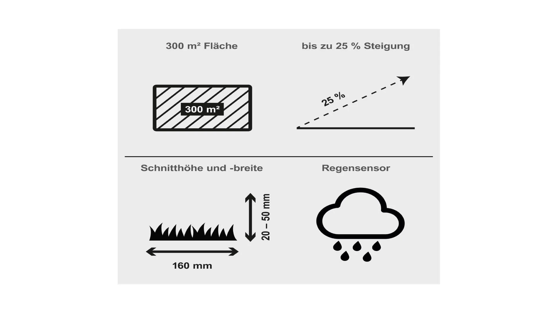 Uz to, tu je i kišni senzor koji vraća RRMA300 kosilicu u stanicu pri prvim kapima kiše.