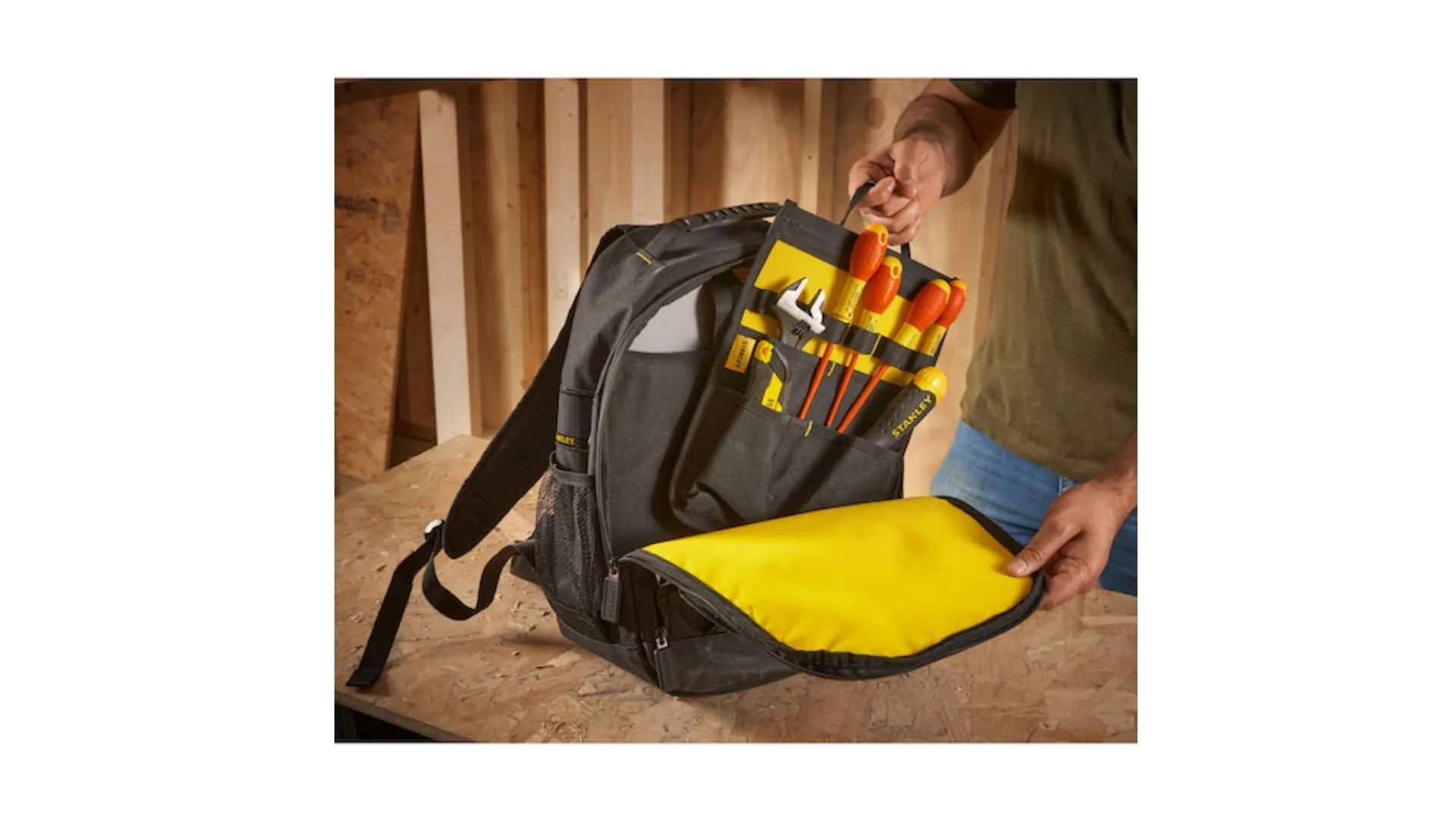 STANLEY® ruksak za alat STST1-72335 nudi široki otvor sa patent-zipom za brz i lagan pristup ručnim i manjim električnim alatima te sitnim dijelovima.