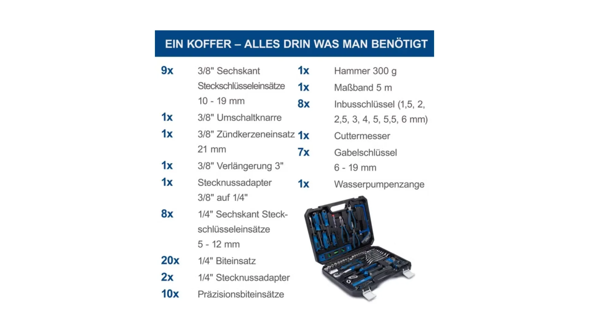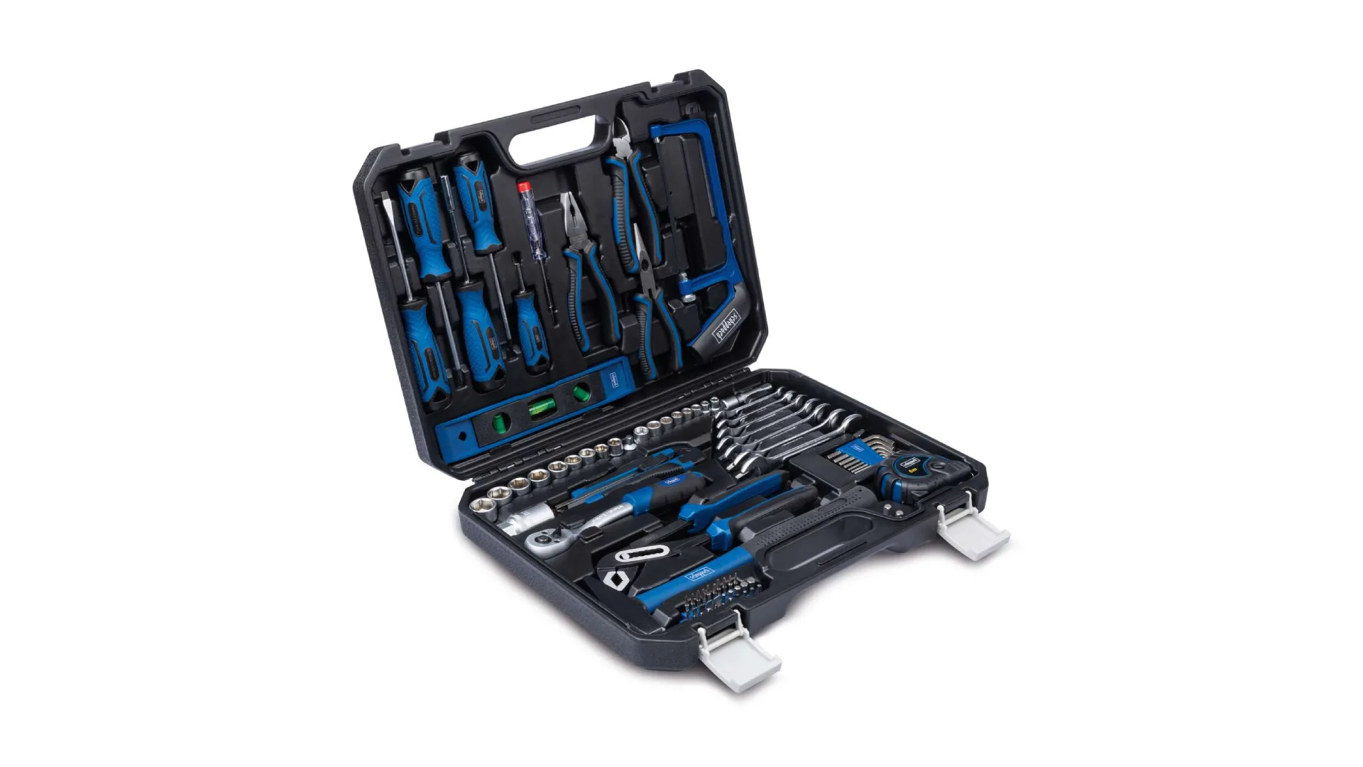 Scheppach alatna kutija WZK120 sadrži 97 praktičnih alata, što je čini idealnom za upotrebu u domaćinstvu, na gradilištima, u radionicama, pa čak i za kampiranje.