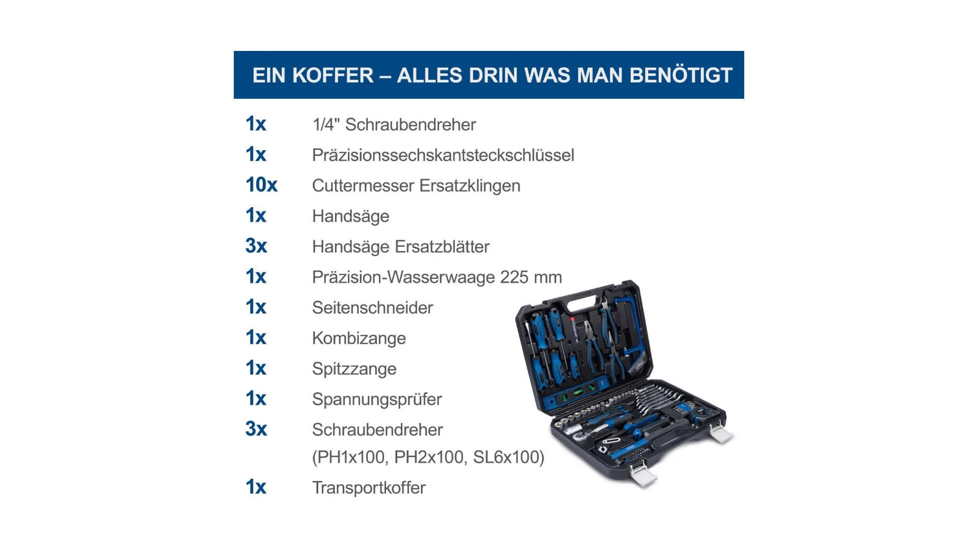 U setu WZK120 ćete pronaći razne odvijače, precizne nastavke za bitove, ručnu pilu, čekić, mjerilo, inbus set, noževe i dodatke za zamjenu njihovih oštrica, kao i mnoge druge korisne alate.