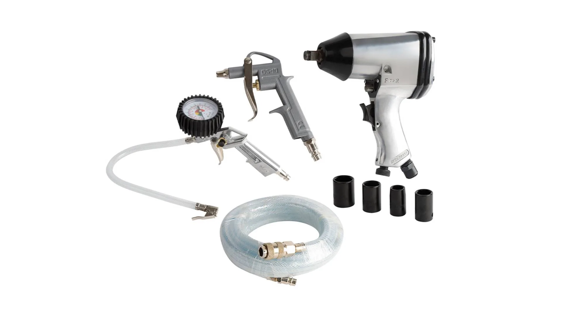 | U setu dolazi | 6x nasadni ključ, Pneumatsko crijevo 5m, Puhalo, Udarni odvijač, Vulkanizerski pištolj |