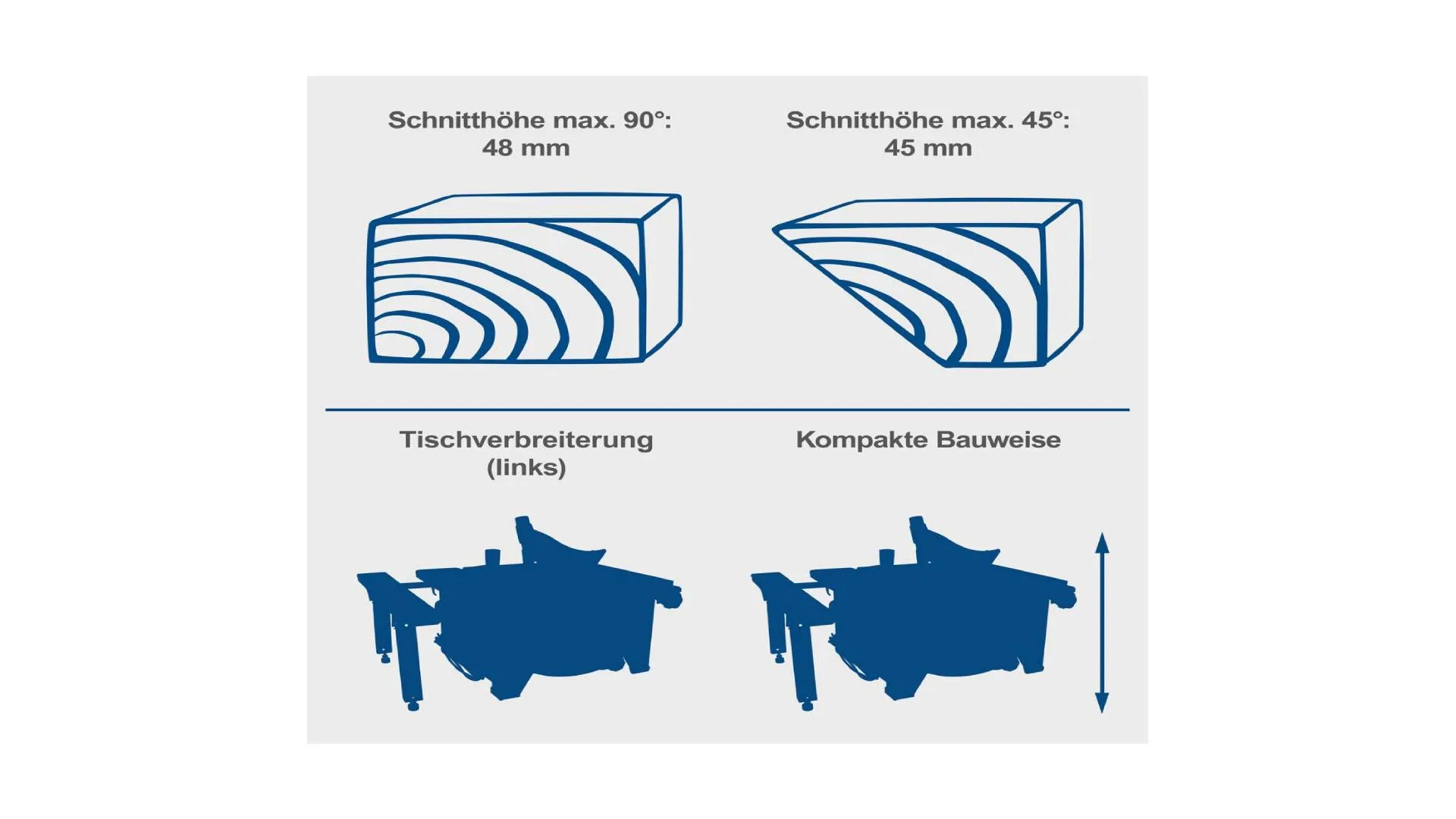 Visoka preciznost osigurana je stufenlos podešavanjem visine i nagiba lista – pila se može nagnuti do 45° što omogućava izradu kosih i gejerskih rezova.