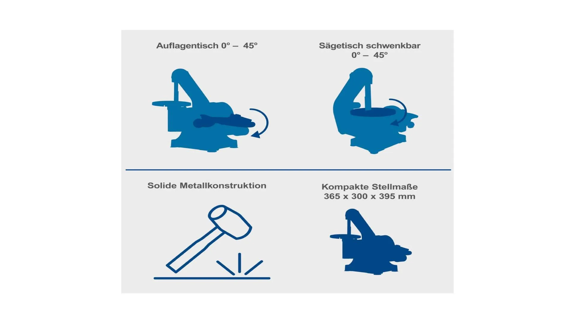 Disk brusilice također se naginje do 45°, a uz poprečni graničnik omogućava brušenje pod uglovima od -60° do +60°.