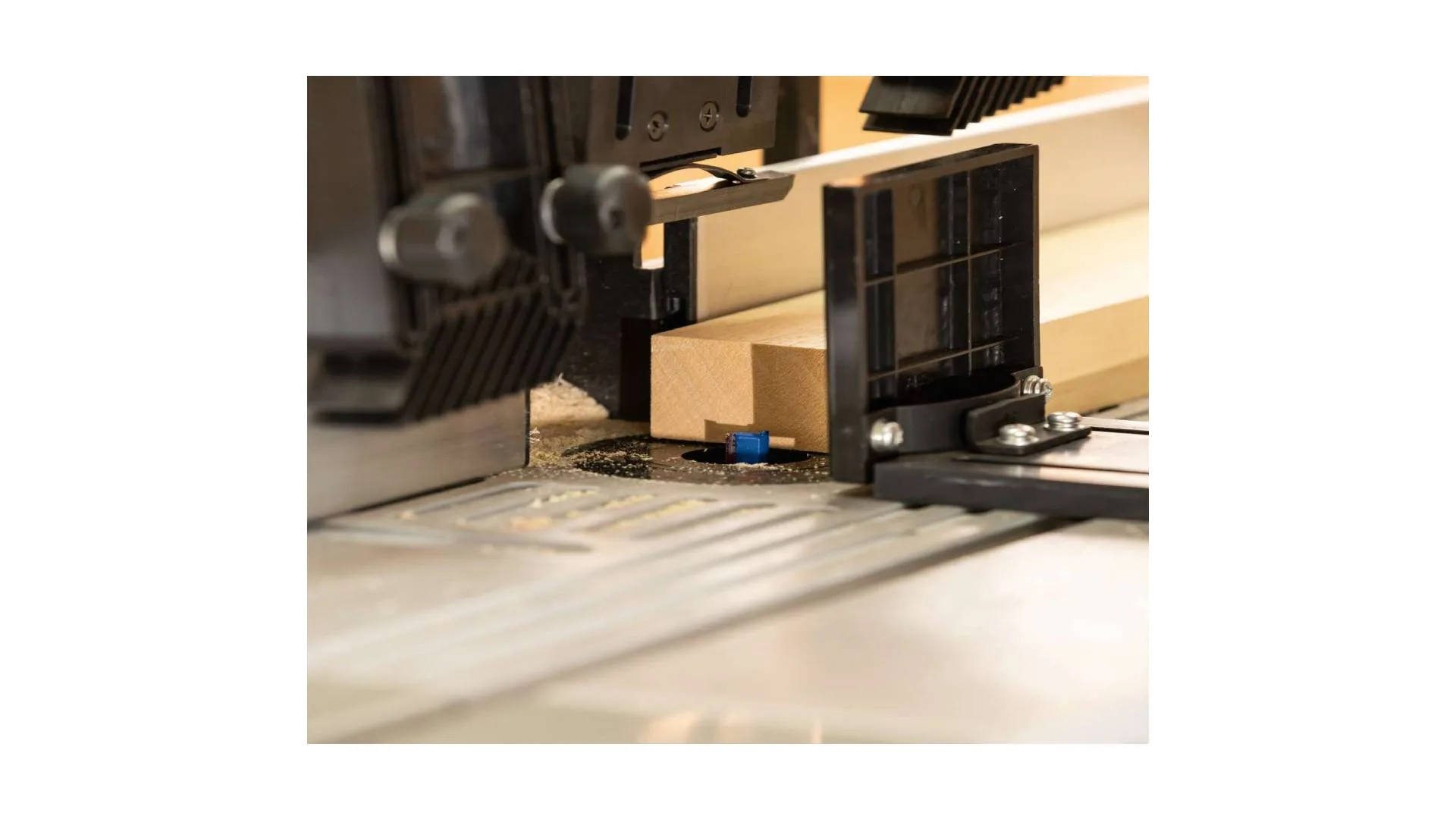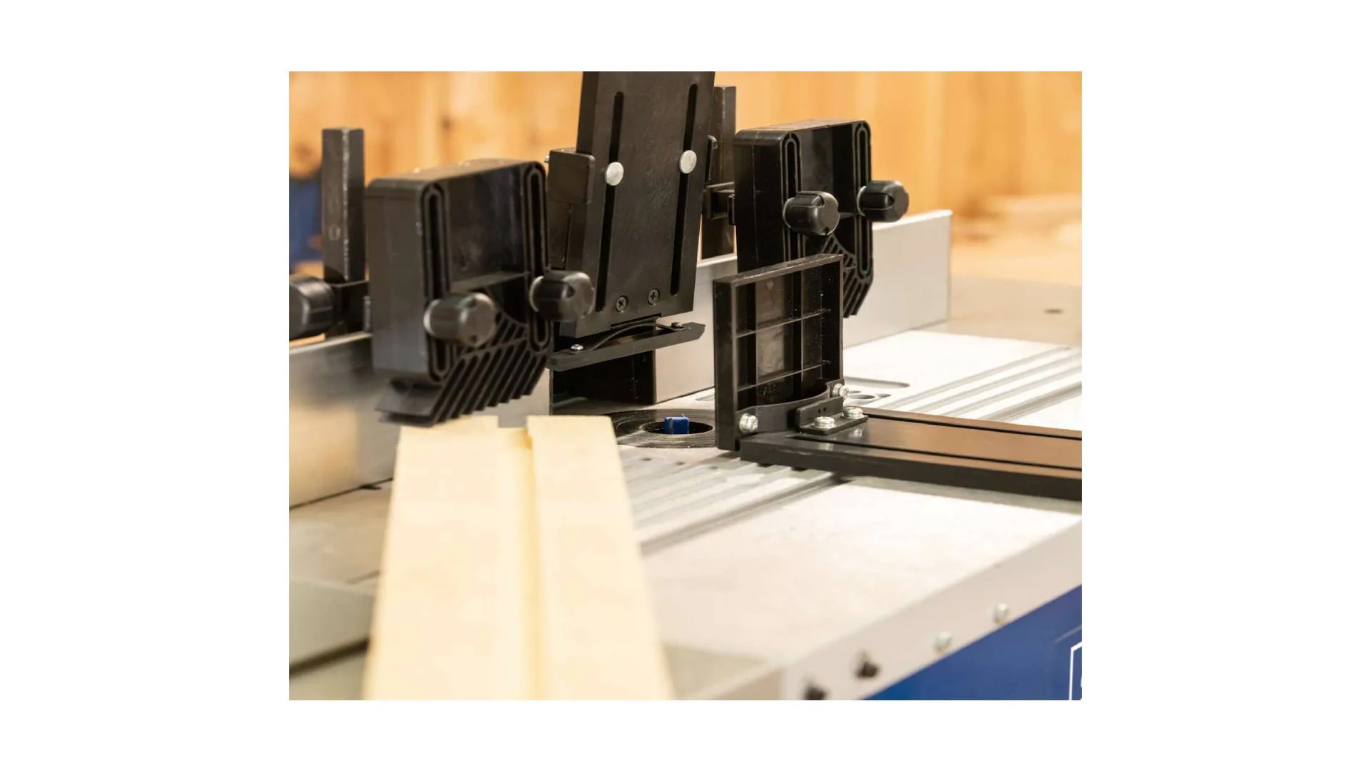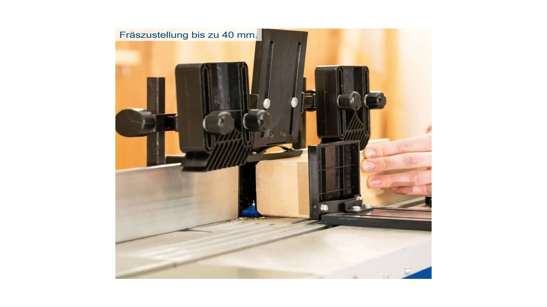 Uz mašinu dolazi ugaoni graničnik i aluminijski graničnici velikih dimenzija, koji omogućavaju sigurnu i stabilnu obradu.