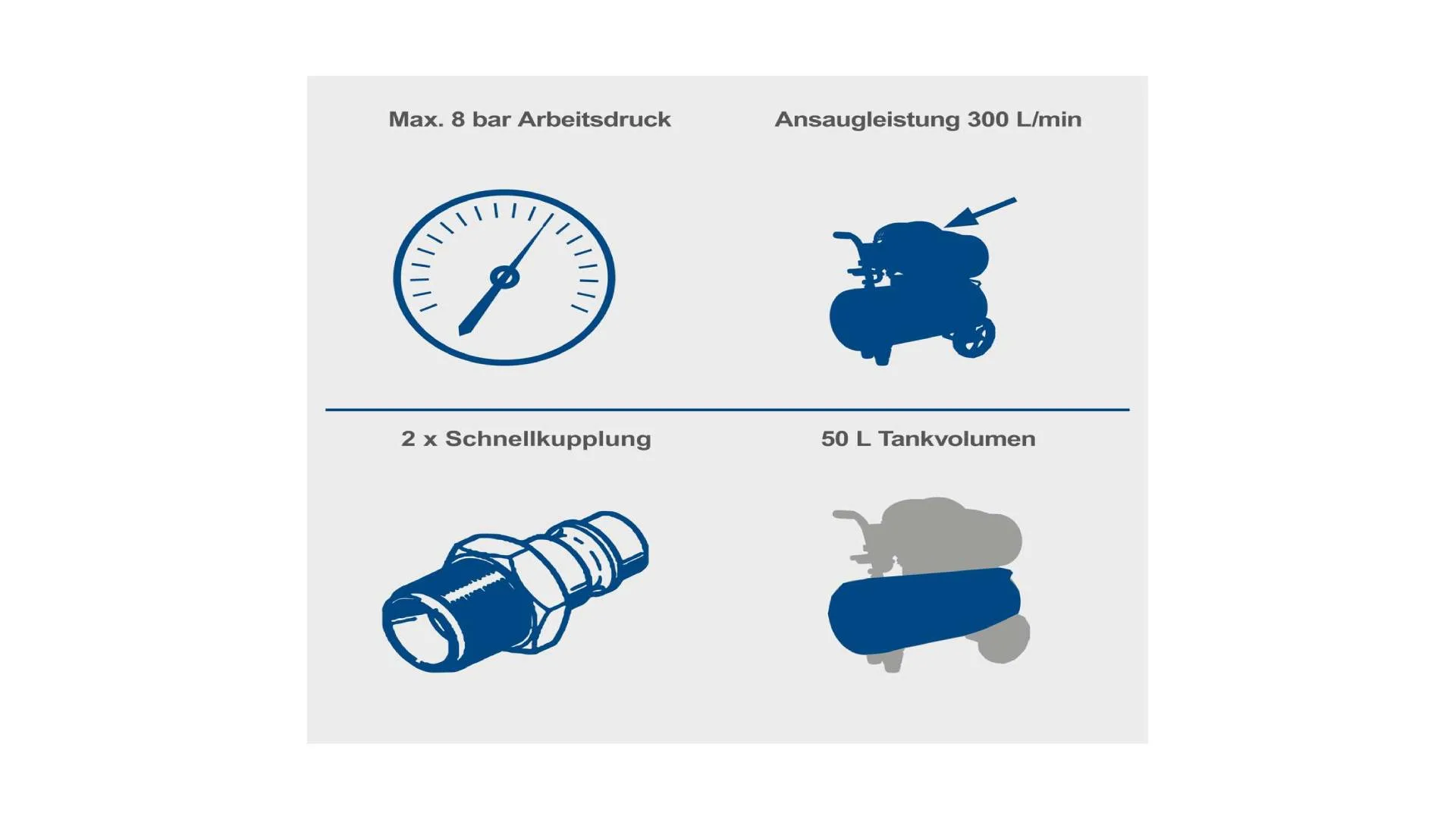 Opremljen snažnim 1.500 W elektromotorom i 50 L rezervoarom, ovaj kompresor nudi usisnu snagu od 300 l/min i maksimalni radni pritisak od 8 bara, što ga čini pogodnim i za zahtjevnije zadatke poput rada sa pištoljima za farbanje, pumpanje guma ili upotrebu sa raznim pneumatskim alatima.