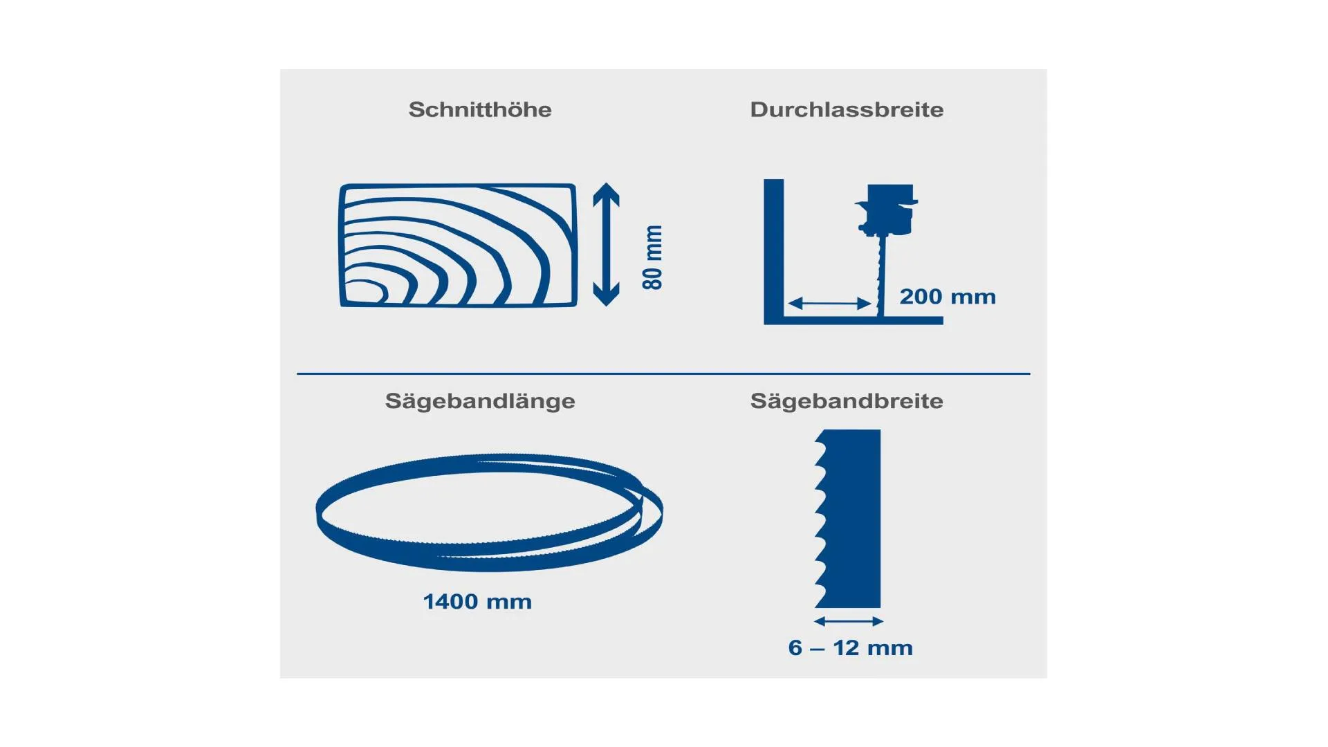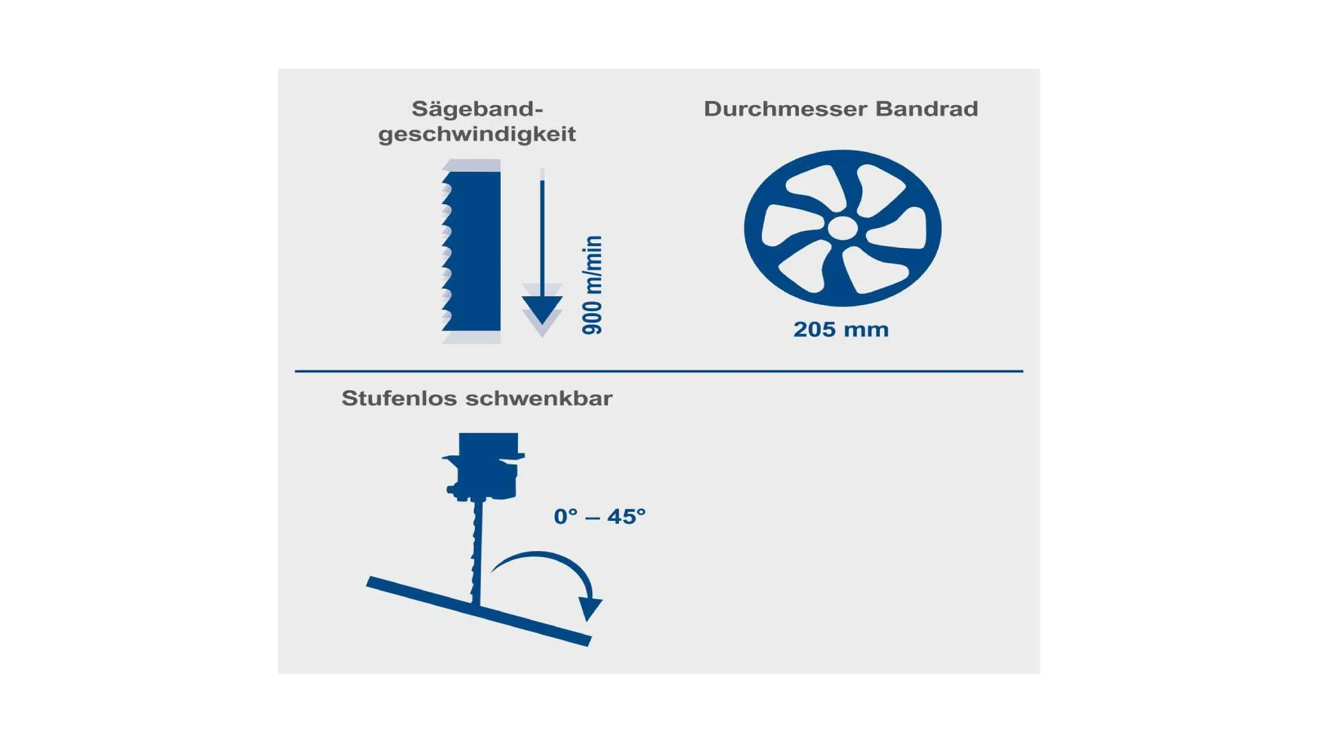 Ova kompaktna, ali snažna tračna pila omogućava precizne pravolinijske rezove, glatke krivine i kose rezove do visine od 80 mm.