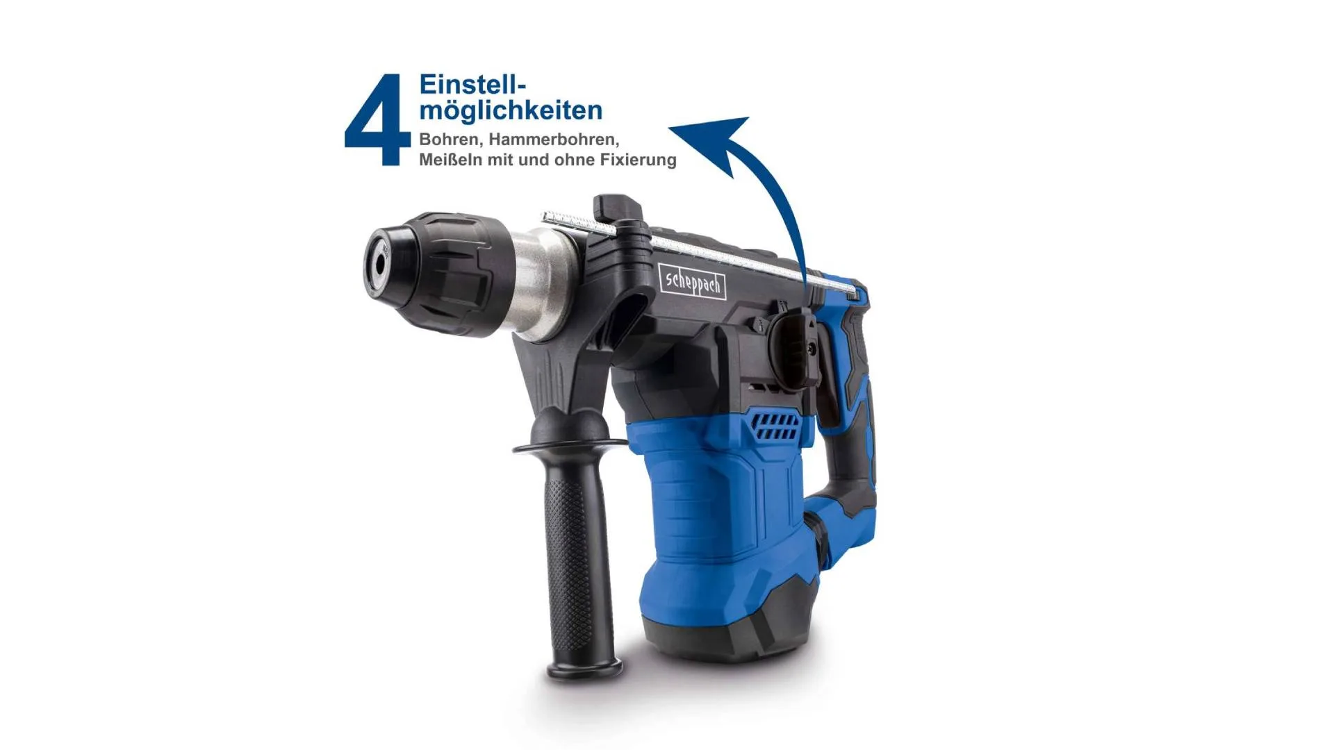 Opremljen je 4-u-1 funkcijom: bušenje bez udara, bušenje s udarom, štemanje s fiksacijom i štemanje bez fiksacije.