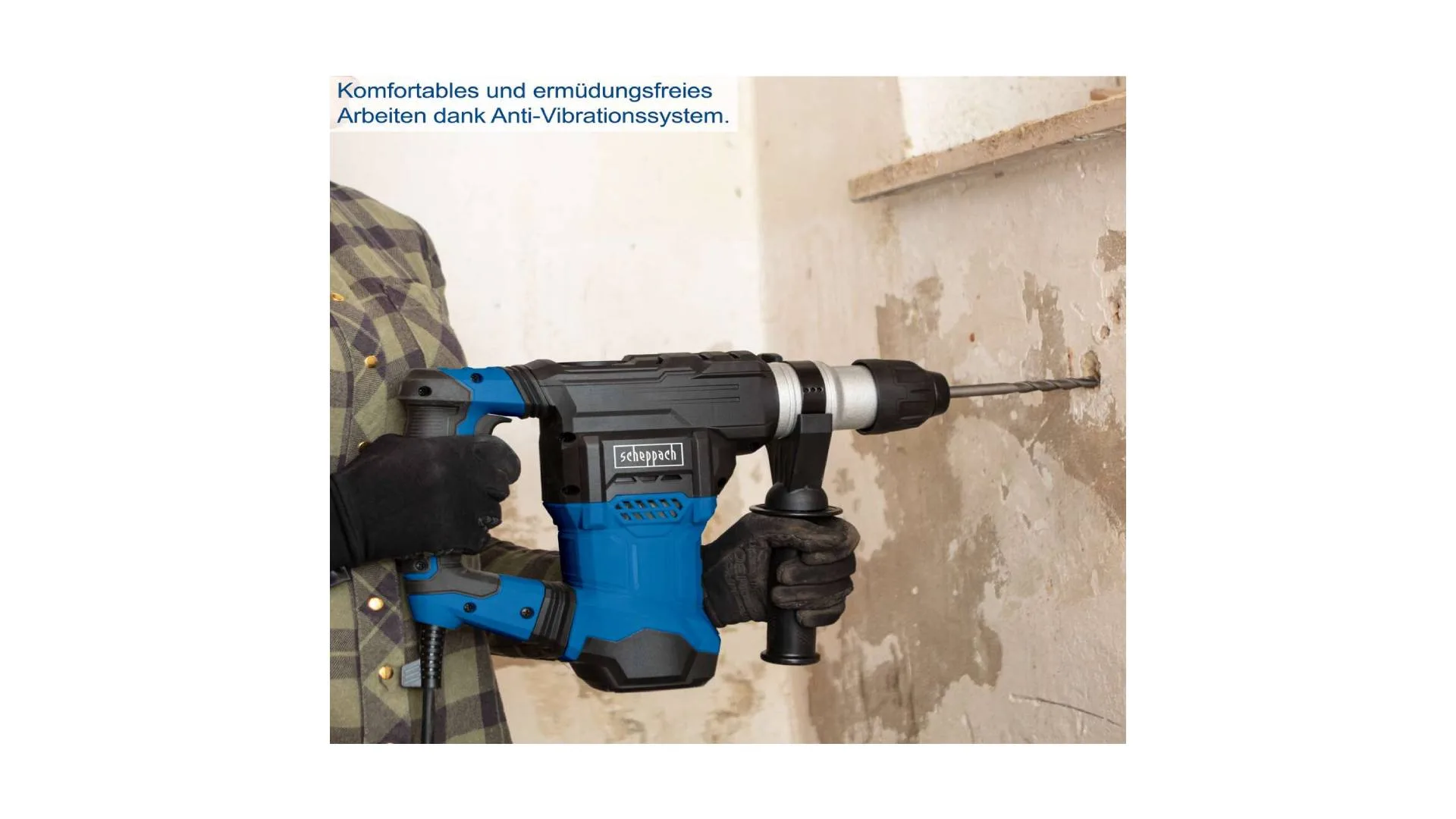 Scheppach DH1500 čekić-bušilica je snažan i svestran alat namijenjen za rad na tvrđim materijalima poput betona, kamena, cigle i pločica.