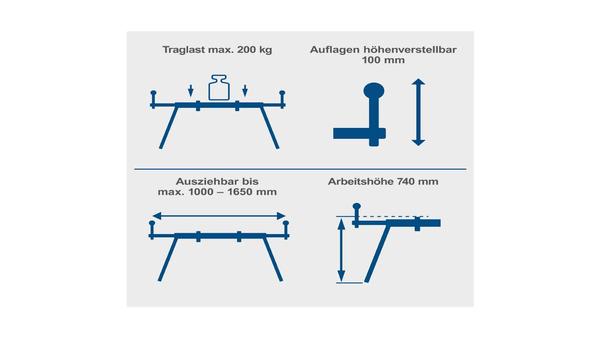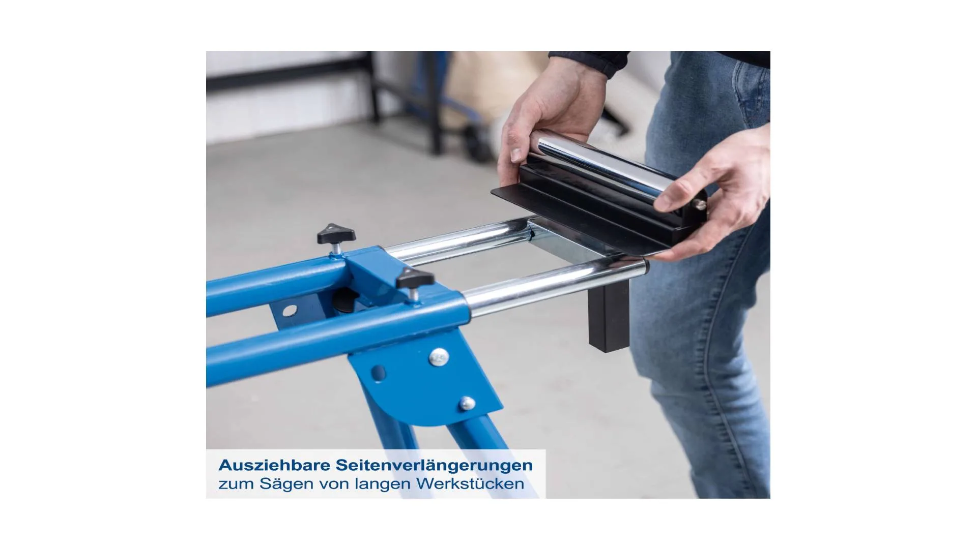 Radna visina UMF1600 stalka od 74 cm omogućava ergonomski rad, dok se bočne ekstenzije mogu produžiti od 100 do 165 cm za sigurno rezanje dužih komada.