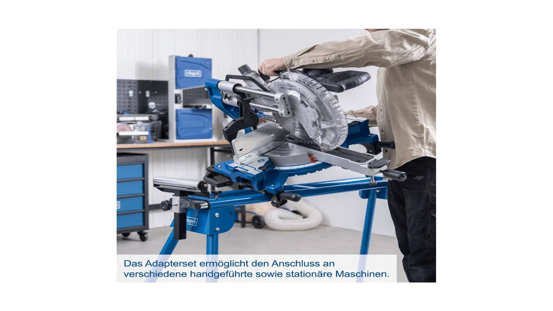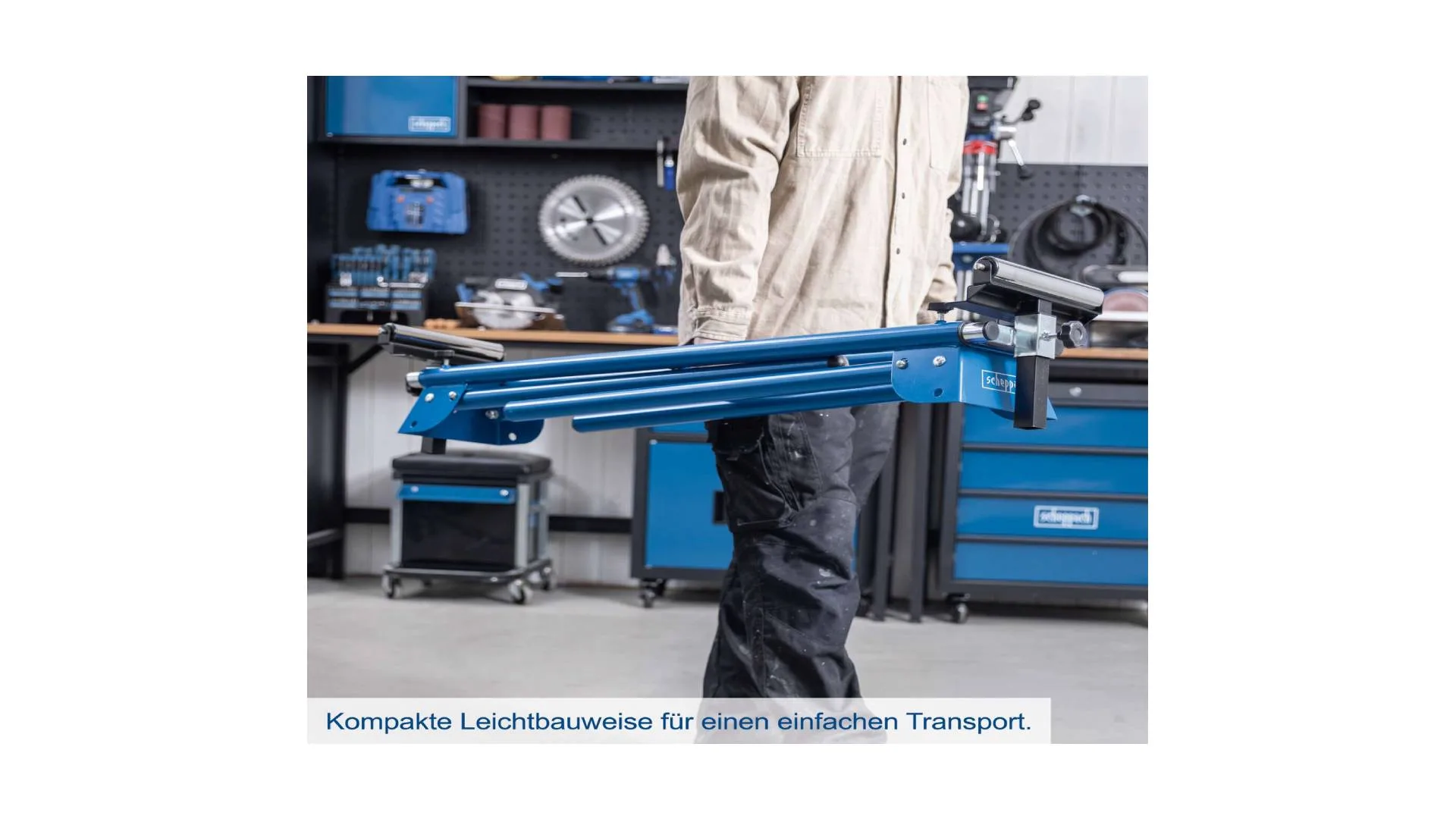 Scheppach UMF2000 radni stol je univerzalno i čvrsto podnožje za mašine, idealno za rad s raznim modelima nagibnih i kliznih pila, ali i drugim uređajima poput hobli ili tračnih brusilica.