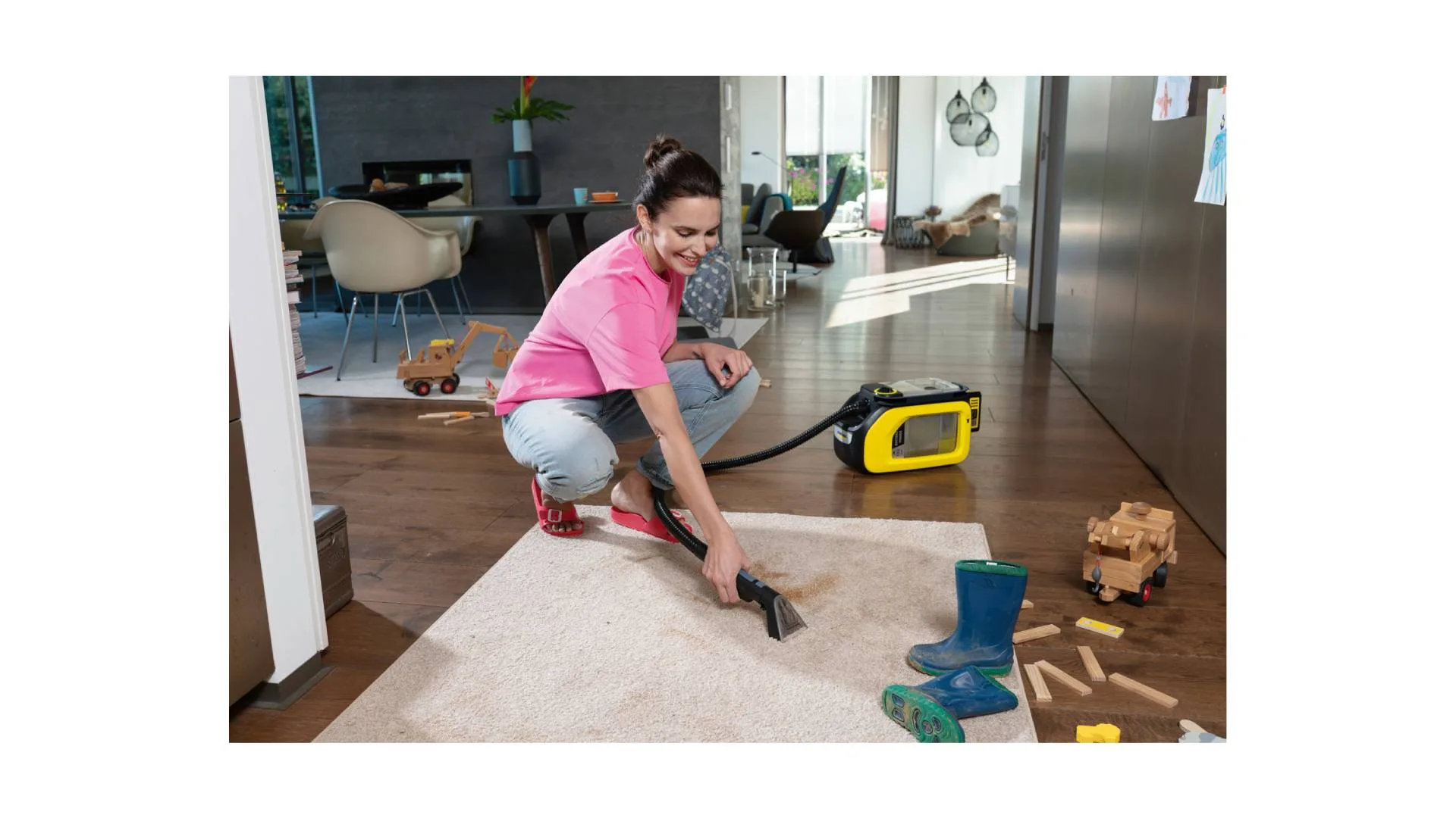 Bez obzira čistite li automobil, kauč ili vrtne jastuke, Karcher SE 3-18 Compact donosi snagu, praktičnost i higijenu u svaki kutak – potpuno bežično, potpuno učinkovito.