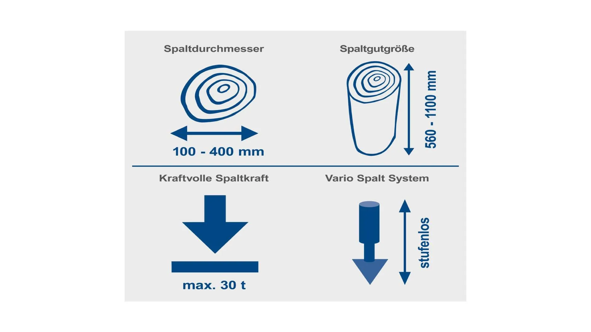 Sa impresivnom spojnom snagom od 30 tona i maksimalnom dužinom cjepanja do 1100 mm, ovaj snažni cjepač bez problema obrađuje i najveće trupce.