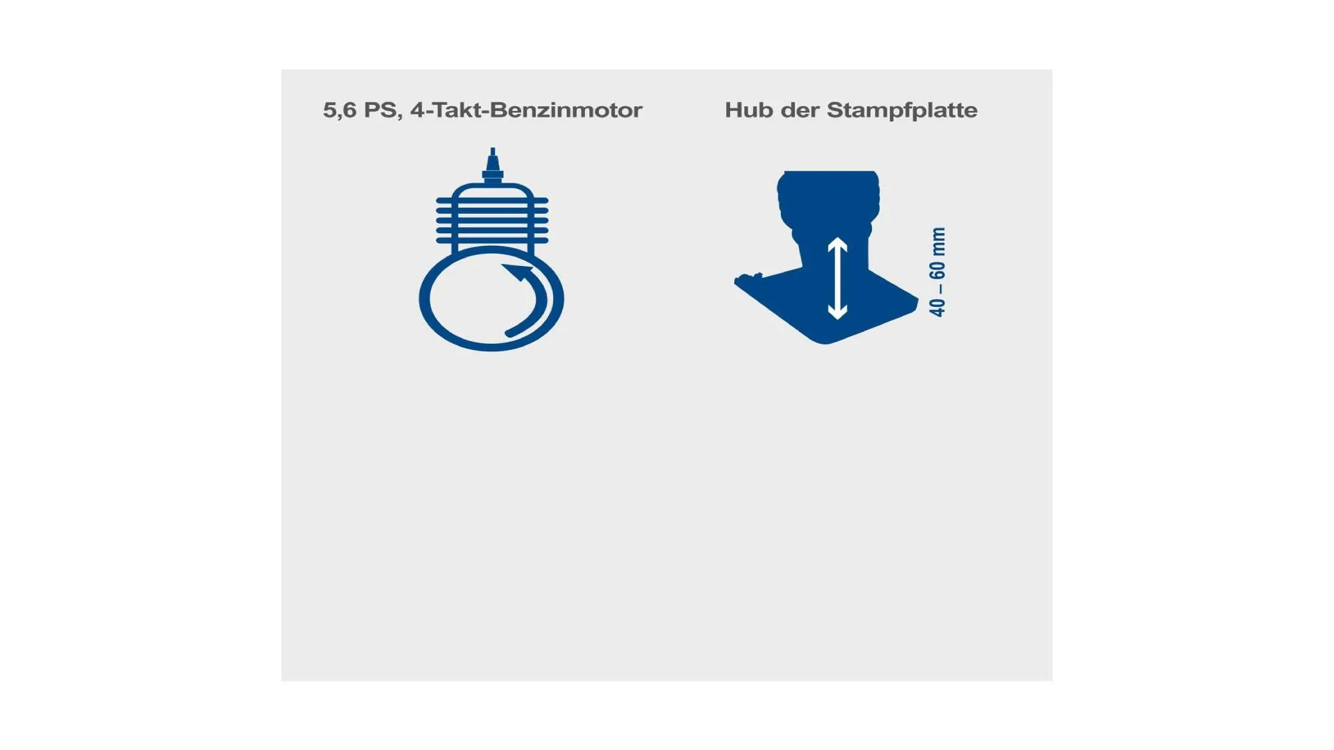 Njegova sila pritiska od 10.000N osigurava odlične rezultate zbijanja, uz maksimalnu dubinu do 60 mm i brzinu kretanja od 13 m/min.
